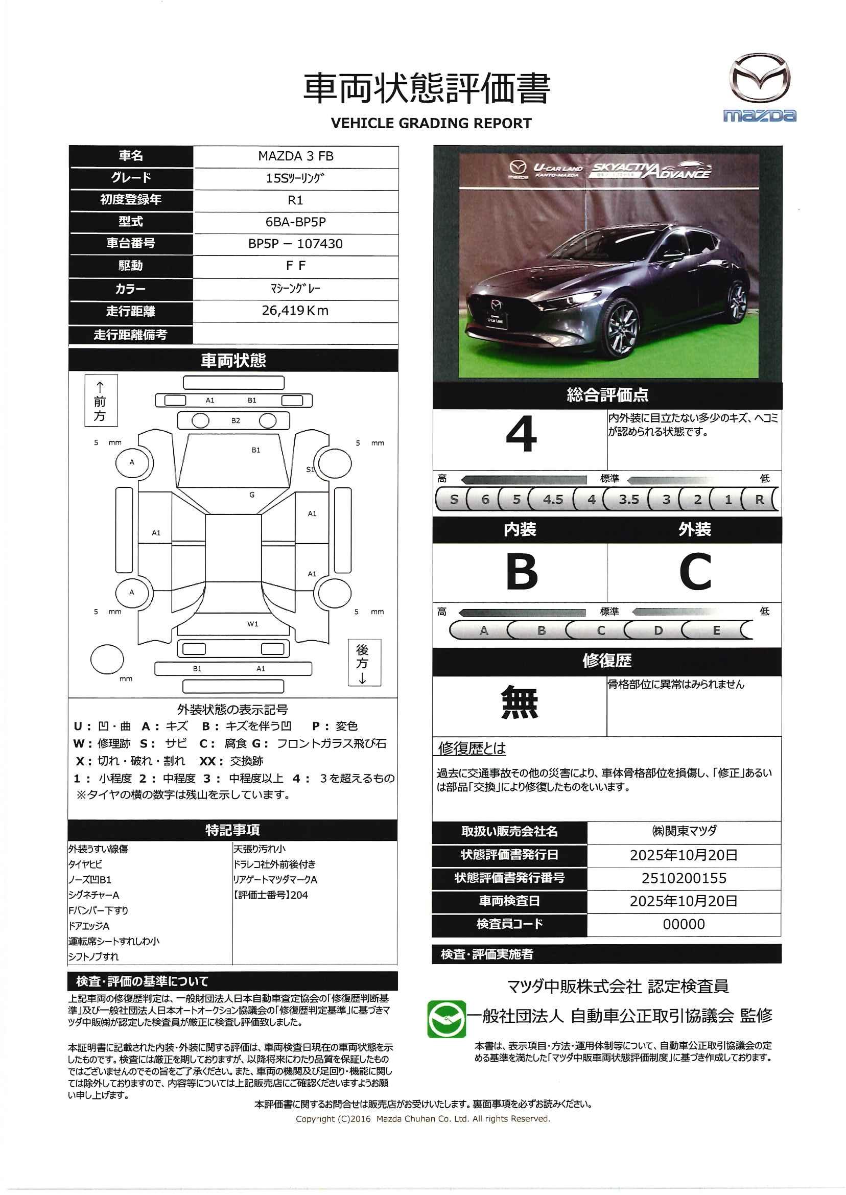 | 保証について | [保証付]:12ヶ月・走行無制限 さわやか保証 全国のマツダ販売店(離島は除く)にて保証修理対応可能です!詳しくは店舗スタッフまで! |