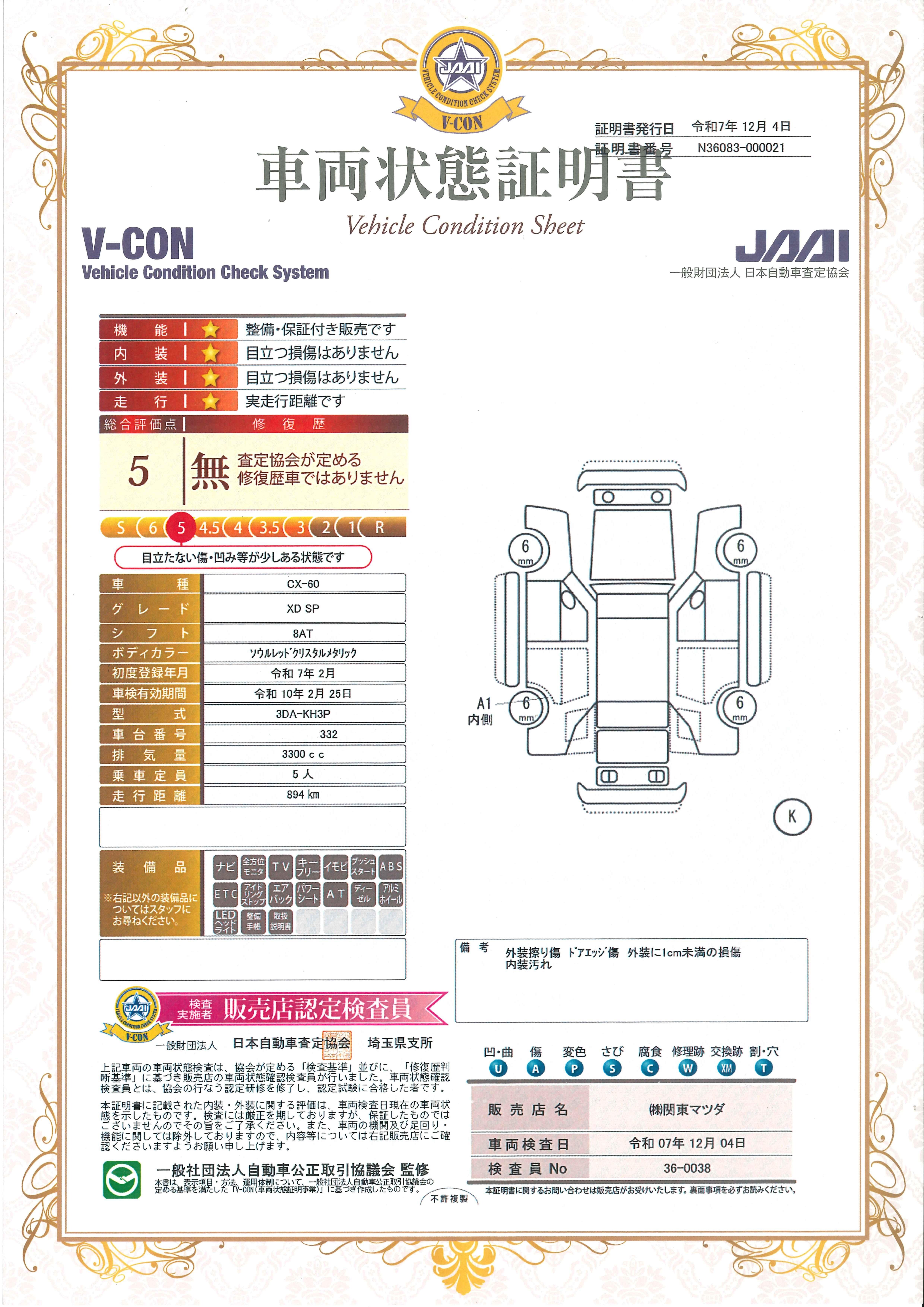 ・12ヶ月点検、又は、車検整備に相当する商品化整備を実施・納車後、1ヶ月後に無料点検整備を実施・全国のマツダディーラー共通のメンテナンスノートを発行・全国のマツダサービス網による万全のサポート体制※マツダ車のみ適用 ※保証内容詳細はスタッフにお問い合わせください。