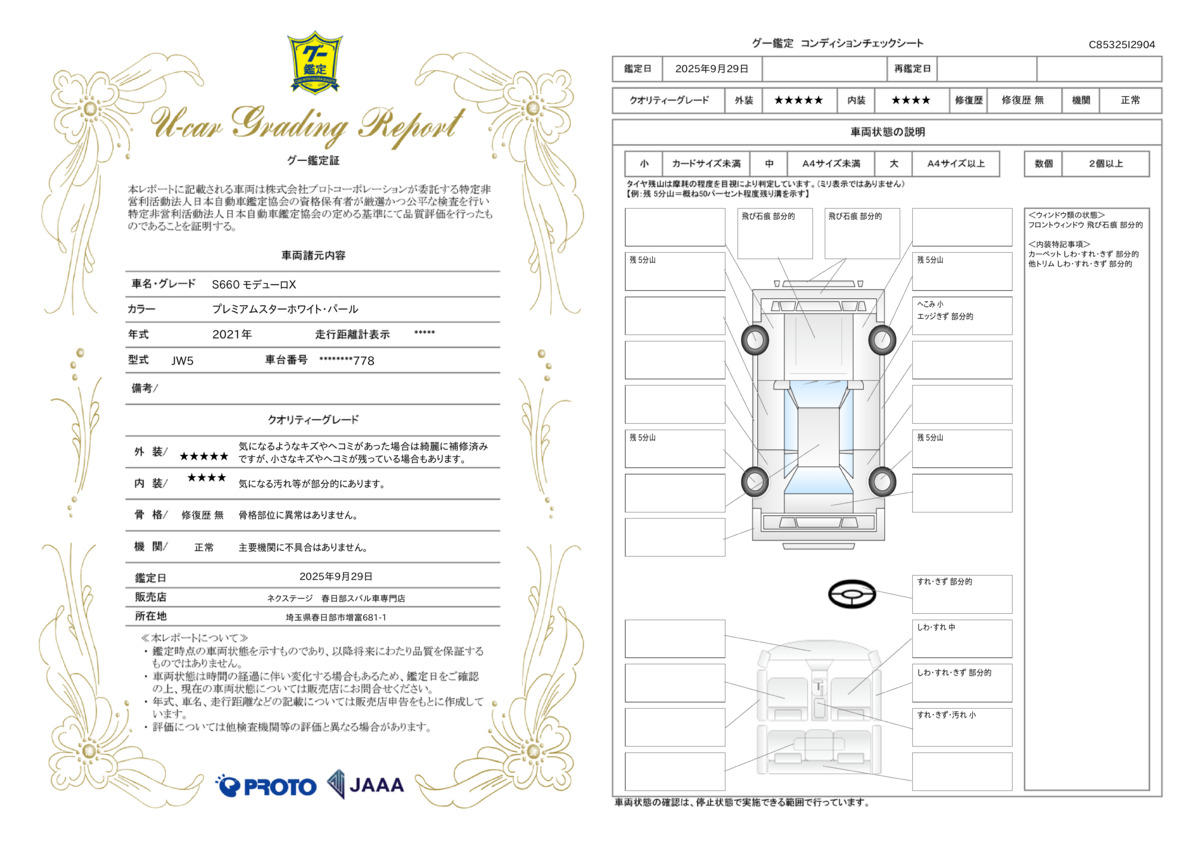 弊社では、全車『修復歴なし』のお車のみ取り扱っております。専任バイヤーによる厳選した仕入れの後、入庫後の車両チェックを行い、ネクステージが認定した高品質な中古車をご提供しております。 15
