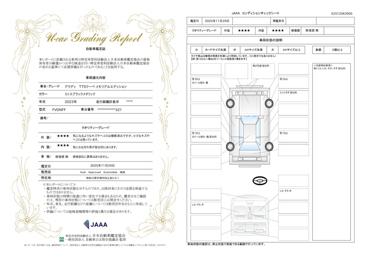 アウディ TTSクーペ メモリアルエディション 100台限定車 専用20インチAW 専用デコラティブパネル