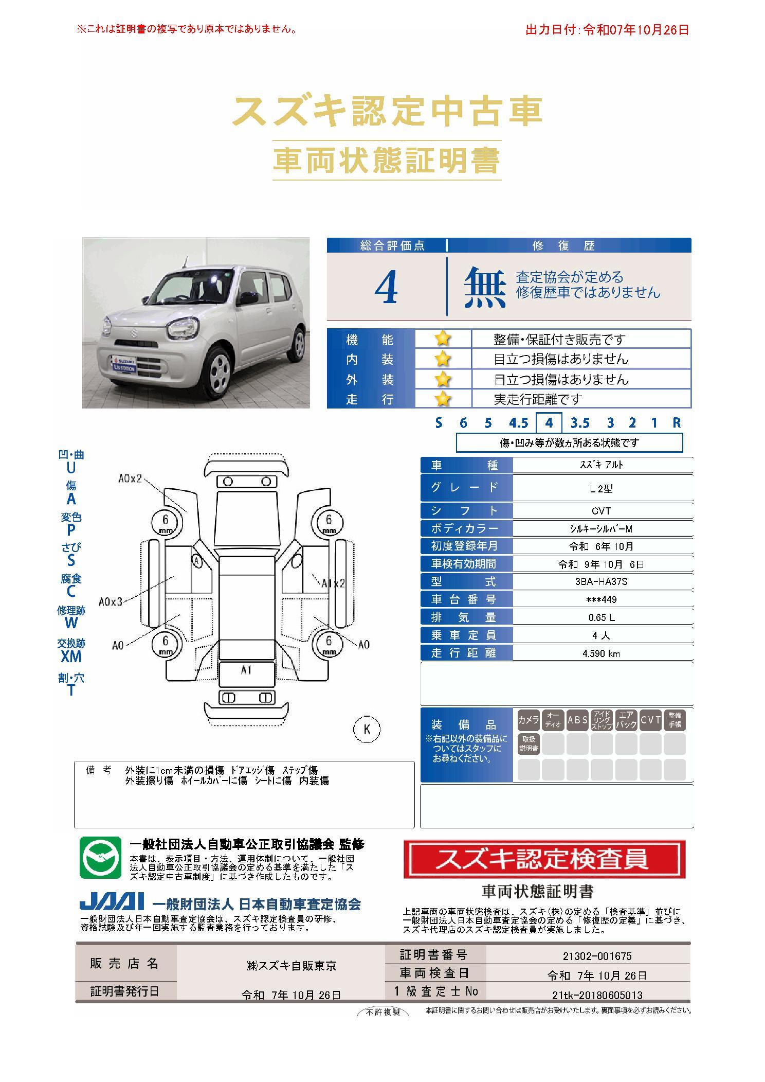 | 保証について | [保証付]:2027(令和9)年10月まで・60000km ※いずれか早い時期が保証適用の条件となります。 |
