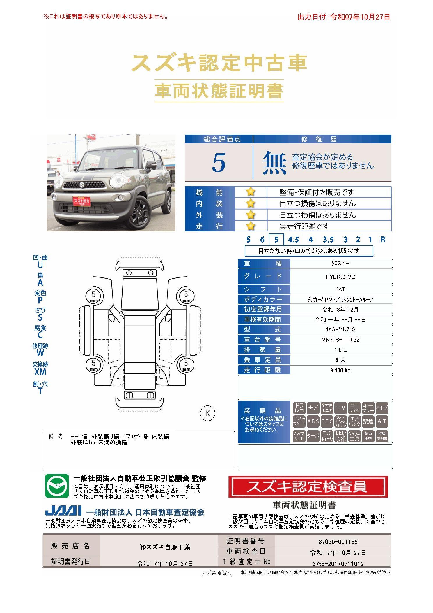 スズキの新車保証を継承致します。初度登録から3年60,000kmの一般保証・初度登録から5年100,000kmの特定保証の2種類になります。詳細に関してはスタッフまでお気軽にお問合せ下さい。全国のスズキの工場で、修理・整備をさせて頂きます。