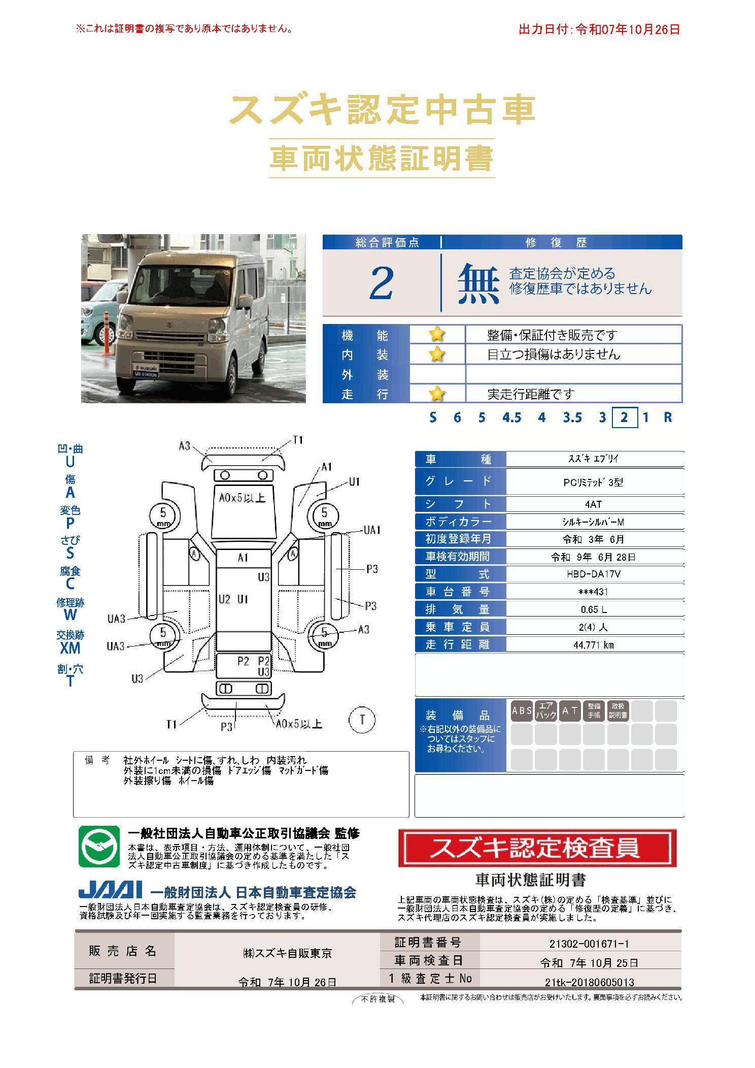 | 保証について | [保証付]:3ヶ月・3000km ※いずれか早い時期が保証適用の条件となります。 |