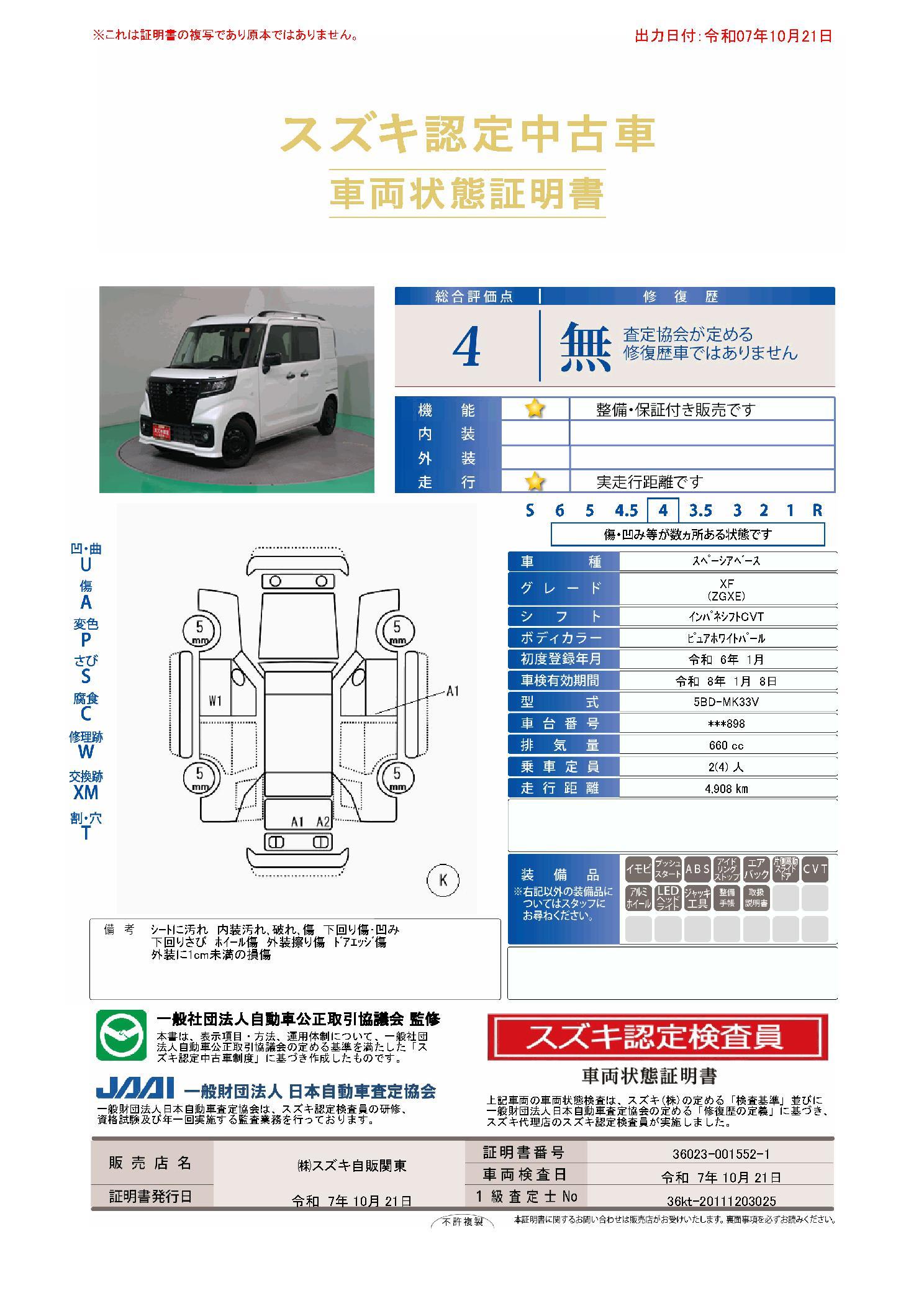 | 保証について | [保証付]:2027(令和9)年1月まで・60000km ※いずれか早い時期が保証適用の条件となります。 |