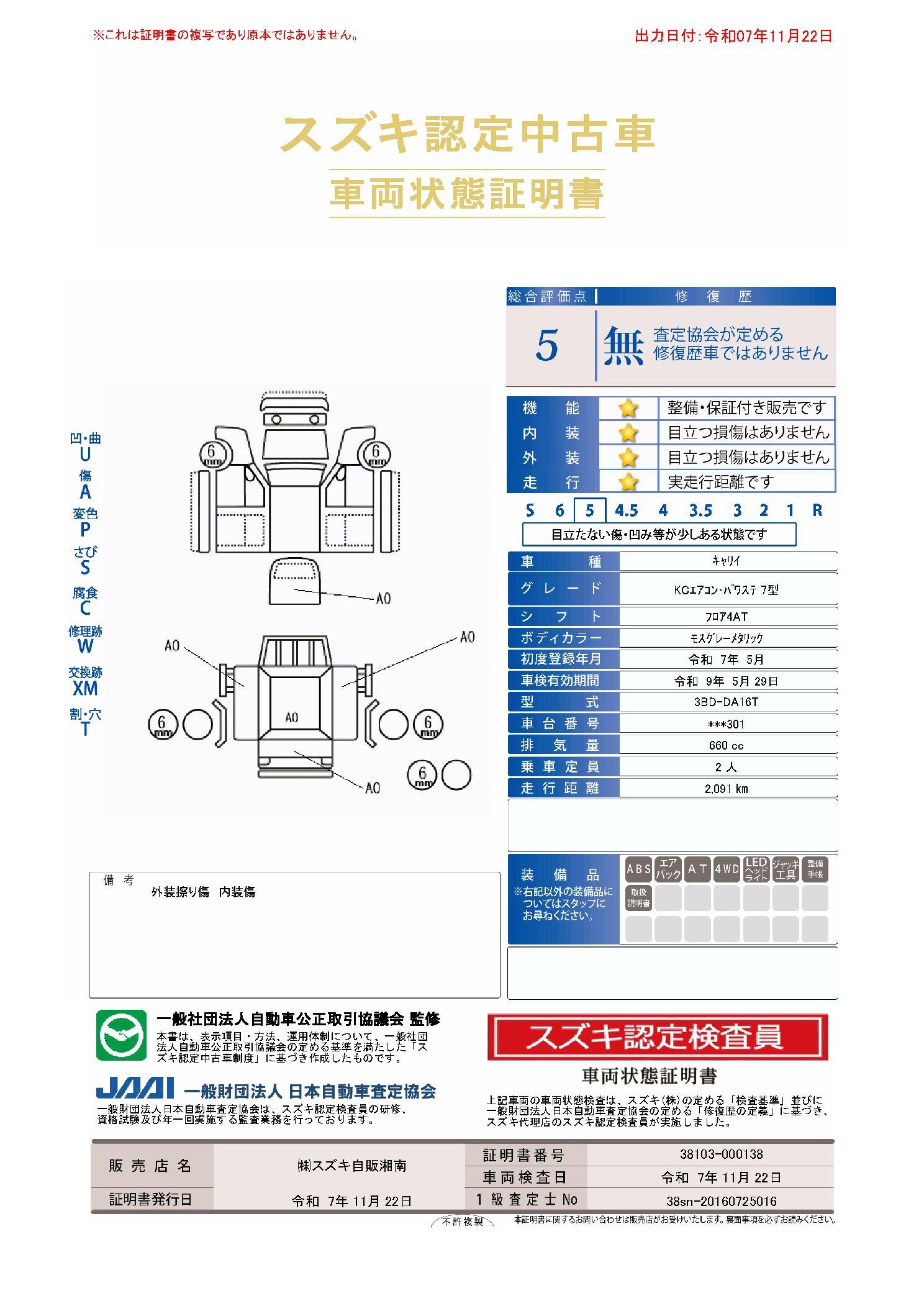 | 保証について | [保証付]:2028(令和10)年5月まで・60000km ※いずれか早い時期が保証適用の条件となります。 |