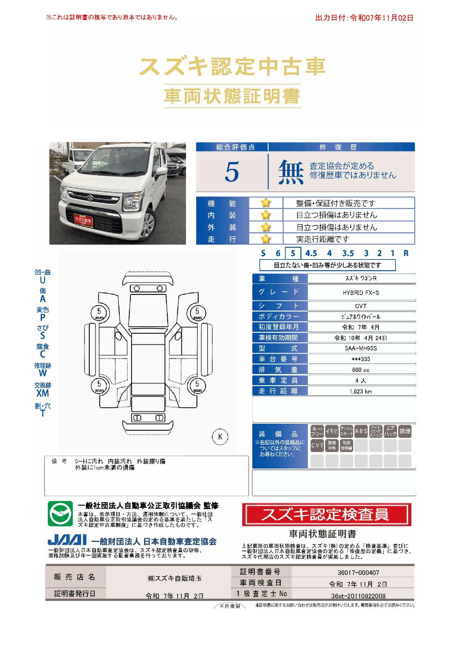 | 保証について | [保証付]:2028(令和10)年4月まで・60000km ※いずれか早い時期が保証適用の条件となります。 |