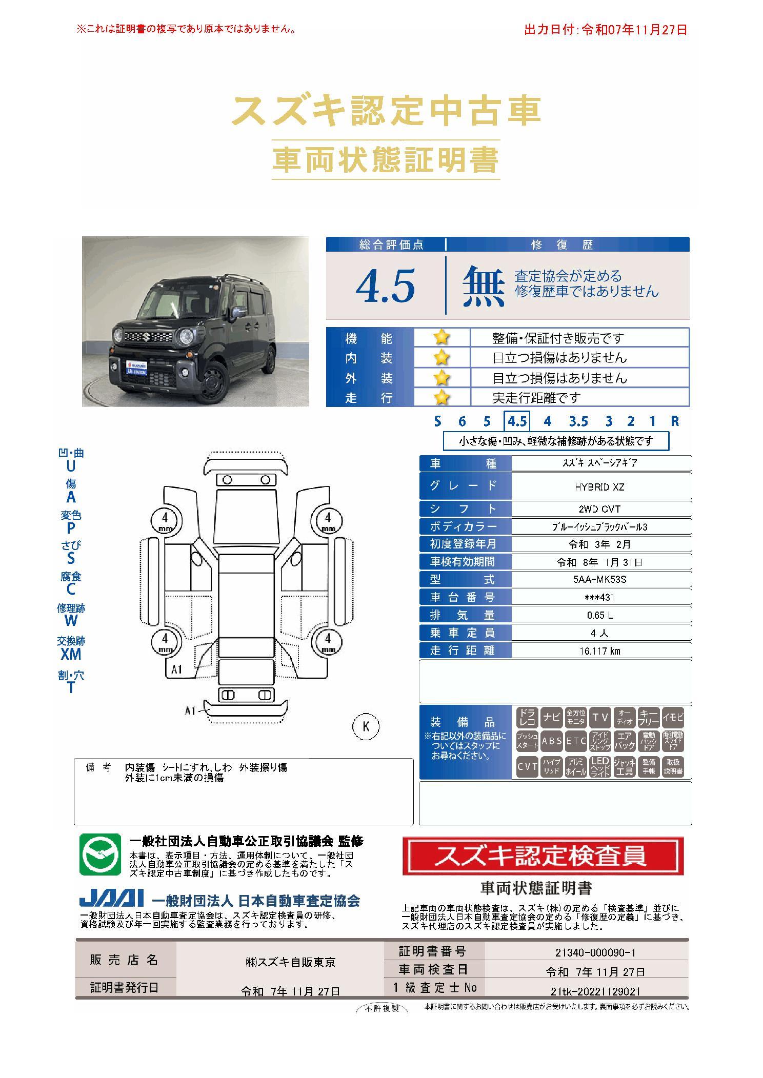 | 保証について | [保証付]:12ヶ月・走行無制限 |