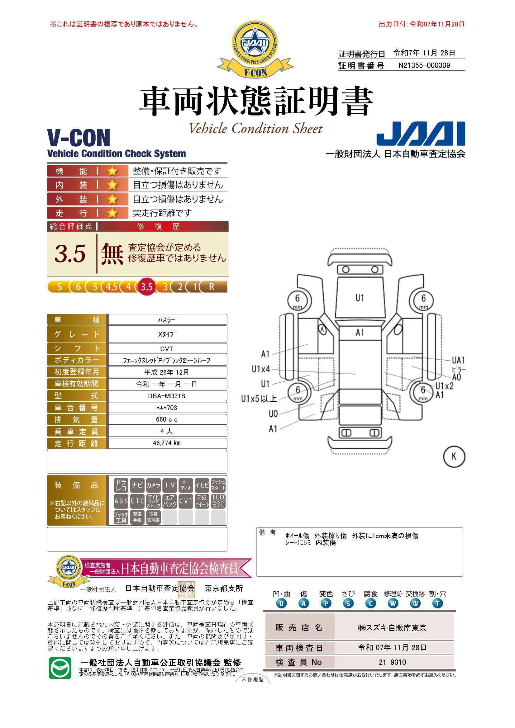| 保証について | [保証付]:3ヶ月・3000km ※いずれか早い時期が保証適用の条件となります。 |