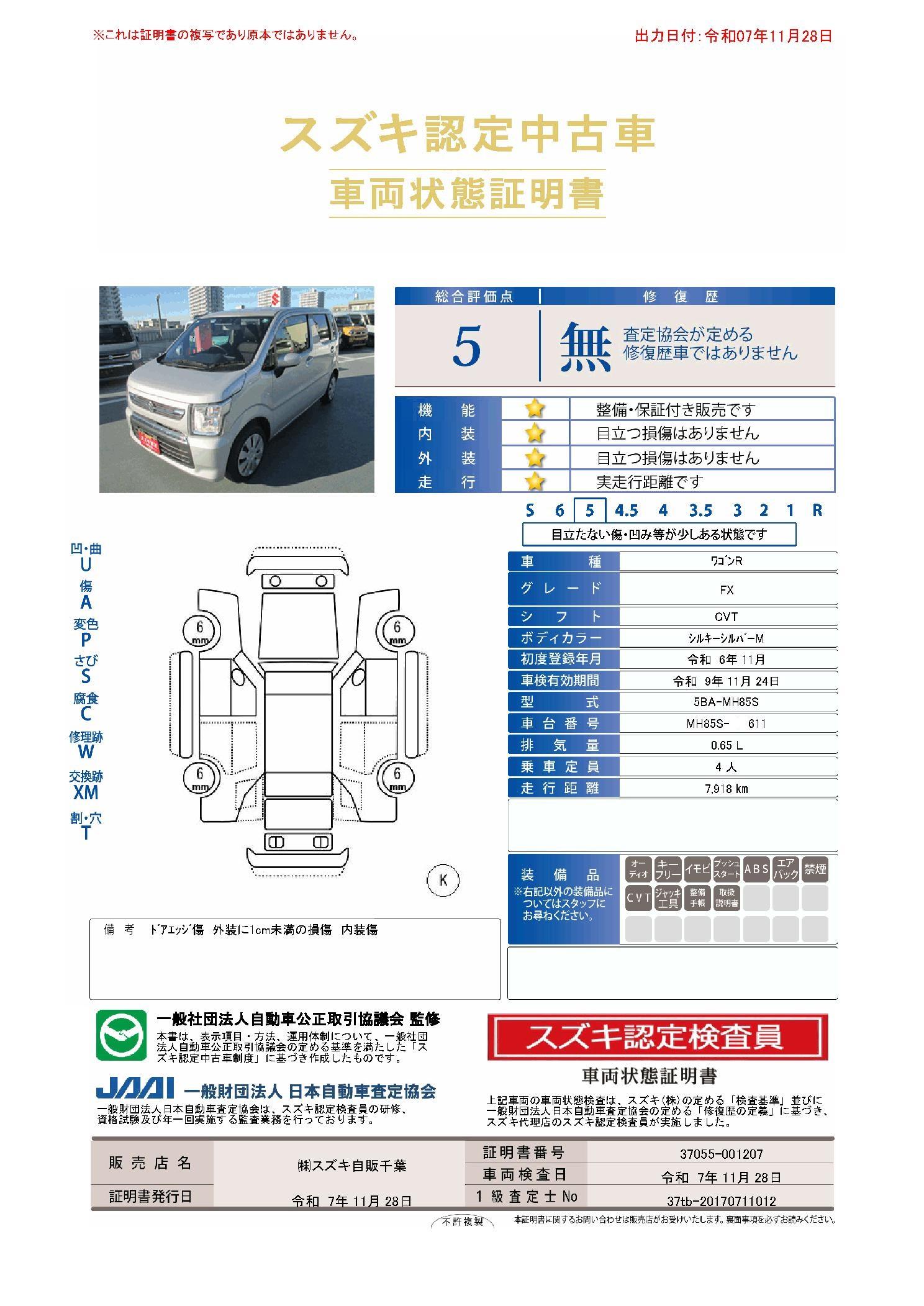 スズキの新車保証を継承致します。初度登録から3年60,000kmの一般保証・初度登録から5年100,000kmの特定保証の2種類になります。詳細に関してはスタッフまでお気軽にお問合せ下さい。全国のスズキの工場で、修理・整備をさせて頂きます。
