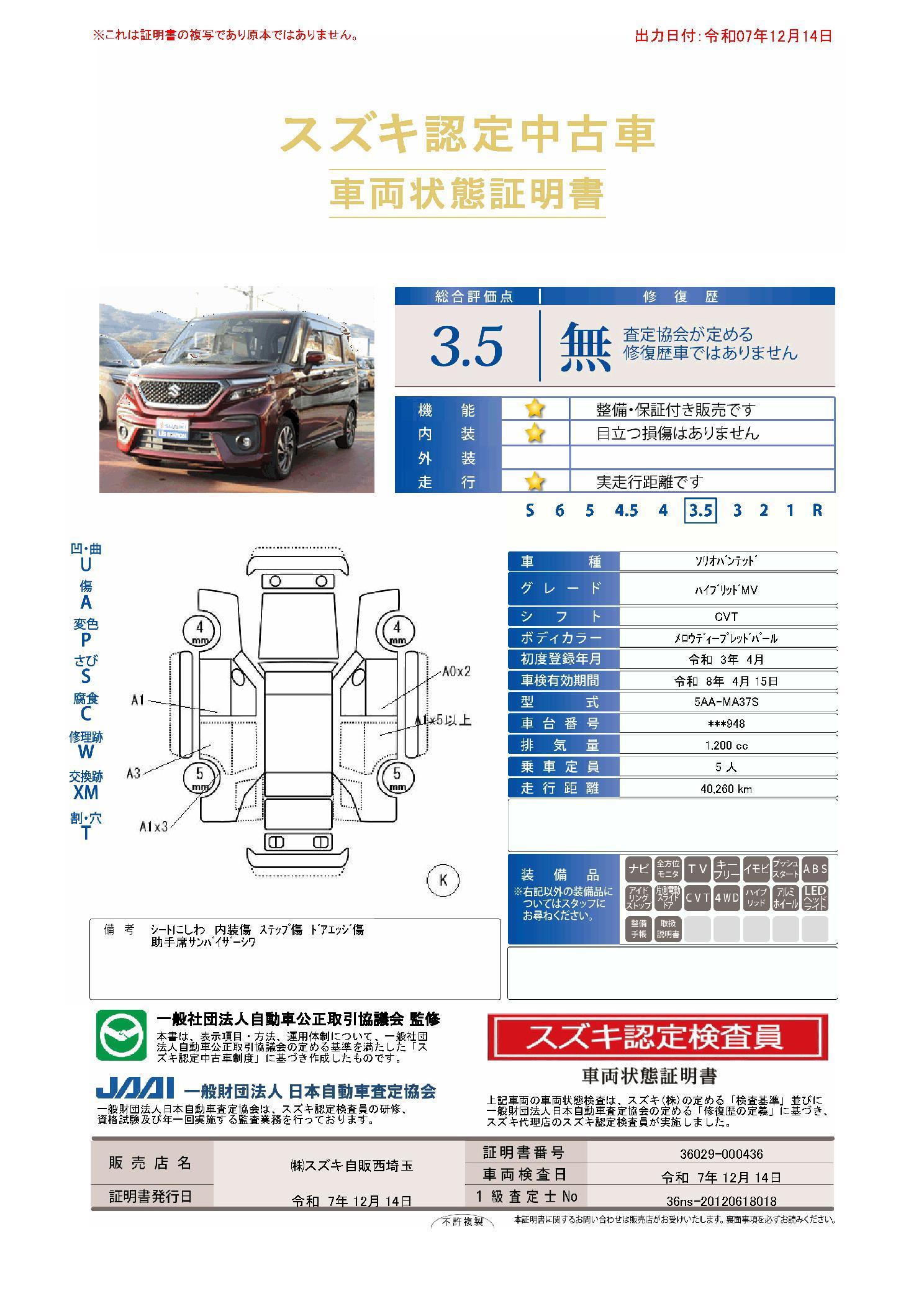 | 保証について | [保証付]:36ヶ月・走行無制限 |