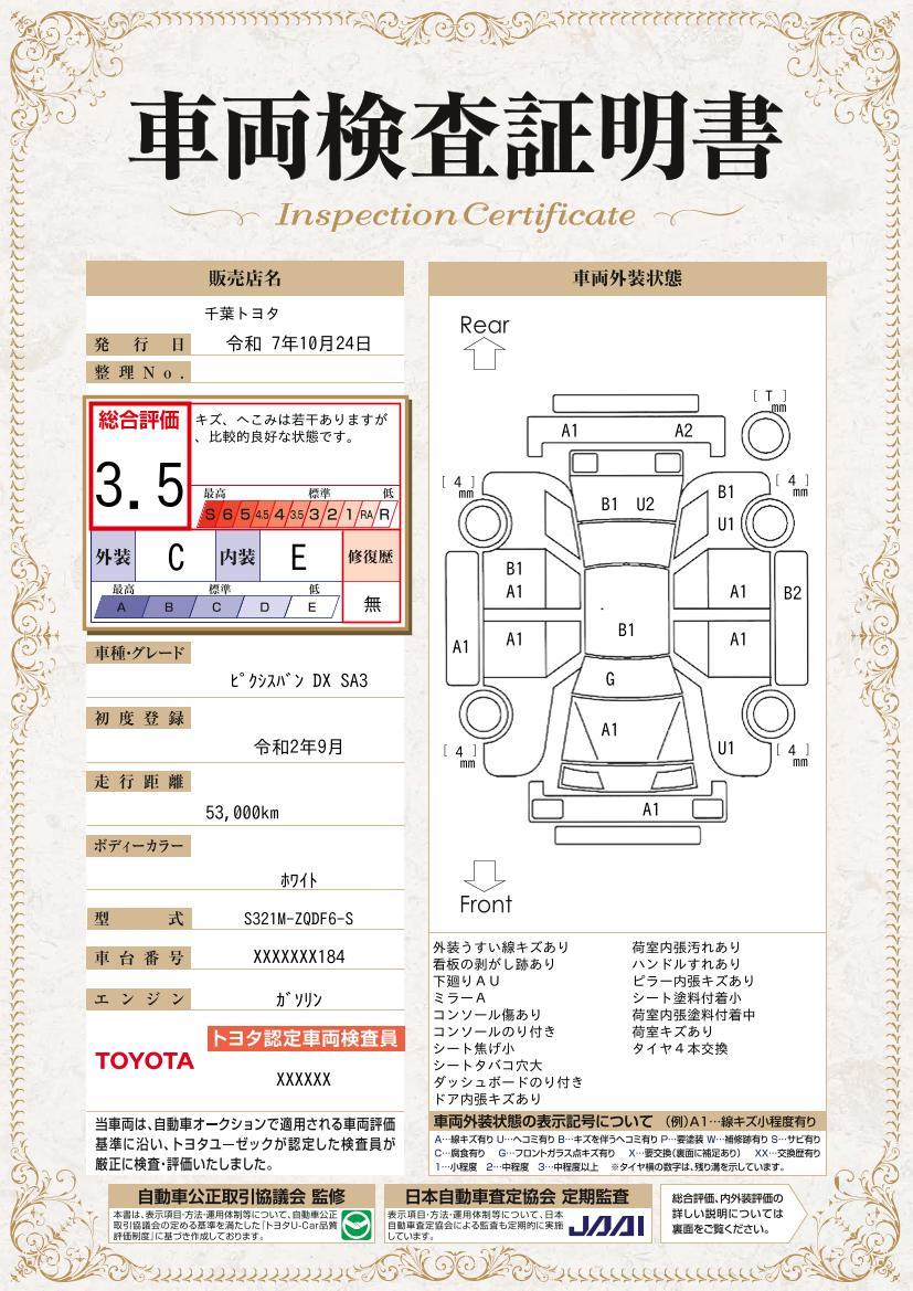 中古車は1台ずつコンディションが違います。トヨタでは中古車の総合点数や内外装の状態などをひと目で分かるよう、プロの検査員が実施した車両検査証明書をご用意しています。 37