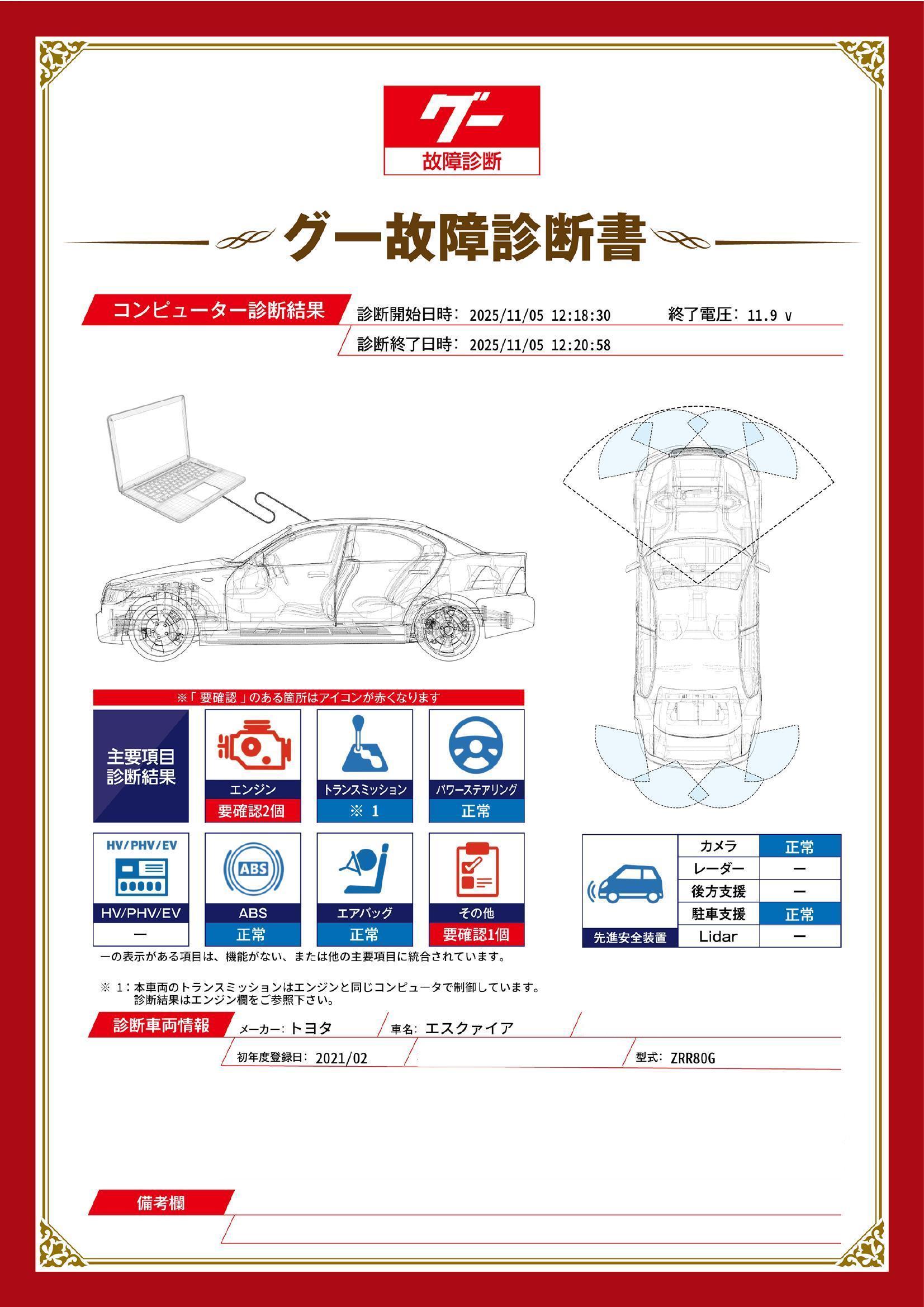 【グー故障診断】診断時にエラーがあった項目は納車整備時に確認して対応し、安全な状態でご納車いたしますのでご安心ください。 65