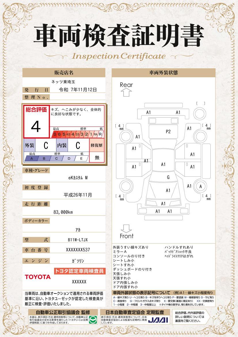 [保証付]:3年・走行無制限 保証対象は約60項目・5000部品。エンジンはもちろん、エアコン、カーナビ、オーディオ類も補償対象です。(ボディ内外装部品・塗装・錆、消耗部品、油脂類は除きます) |