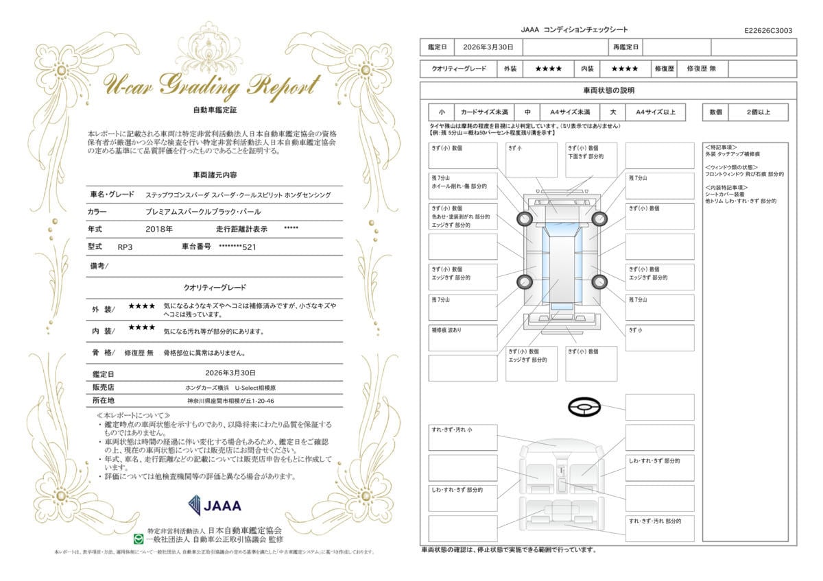 このお車は第三者機関(JAAA)が鑑定を行い、その結果を鑑定証として発行しております。