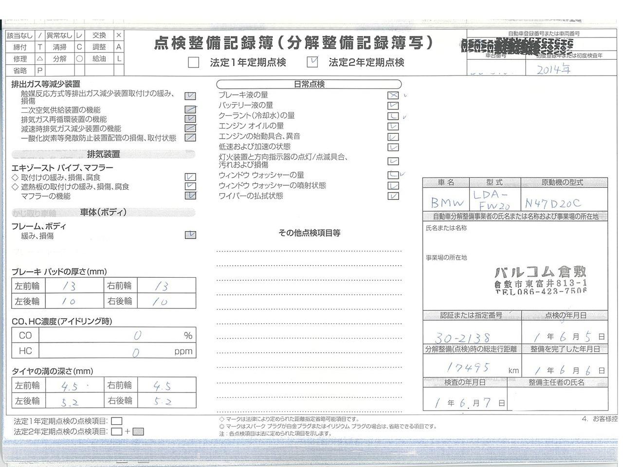 当社はBMWクオリティパートナー認定店です。ご納車前に認証工場にて点検致します。点検整備記録簿も発行致します。 |