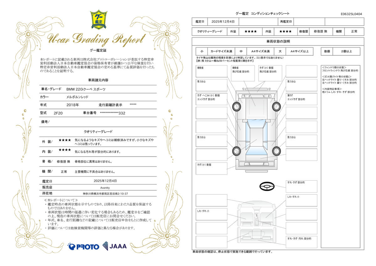 | 保証修理受付先 | 自社認証工場(認証2−6373)にて修理受付対応が可能となります。BMW専用のテスター診断機なども取り揃えております。お気軽にお問合せください。 |