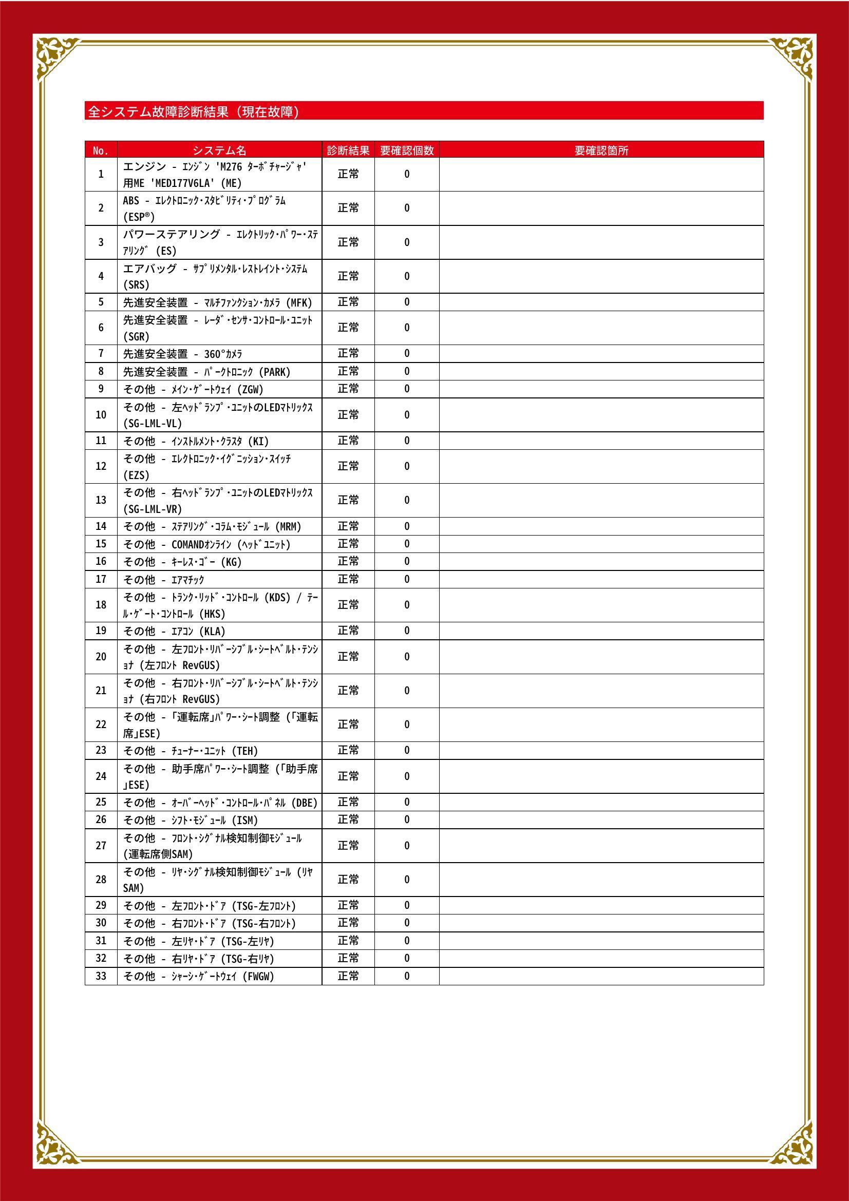 基本保証は納車日から、12か月又は10,000キロまで、全車保証付(一部の車両を除く)。別途、有償にて最長2年走行距離無制限!修理回数・修理金額無制限、免責無の長期安心保証!320項目に及ぶ保証対象部品。全国のディーラーで保証・修理が可能、など盛りだくさんの充実した保証内容です。