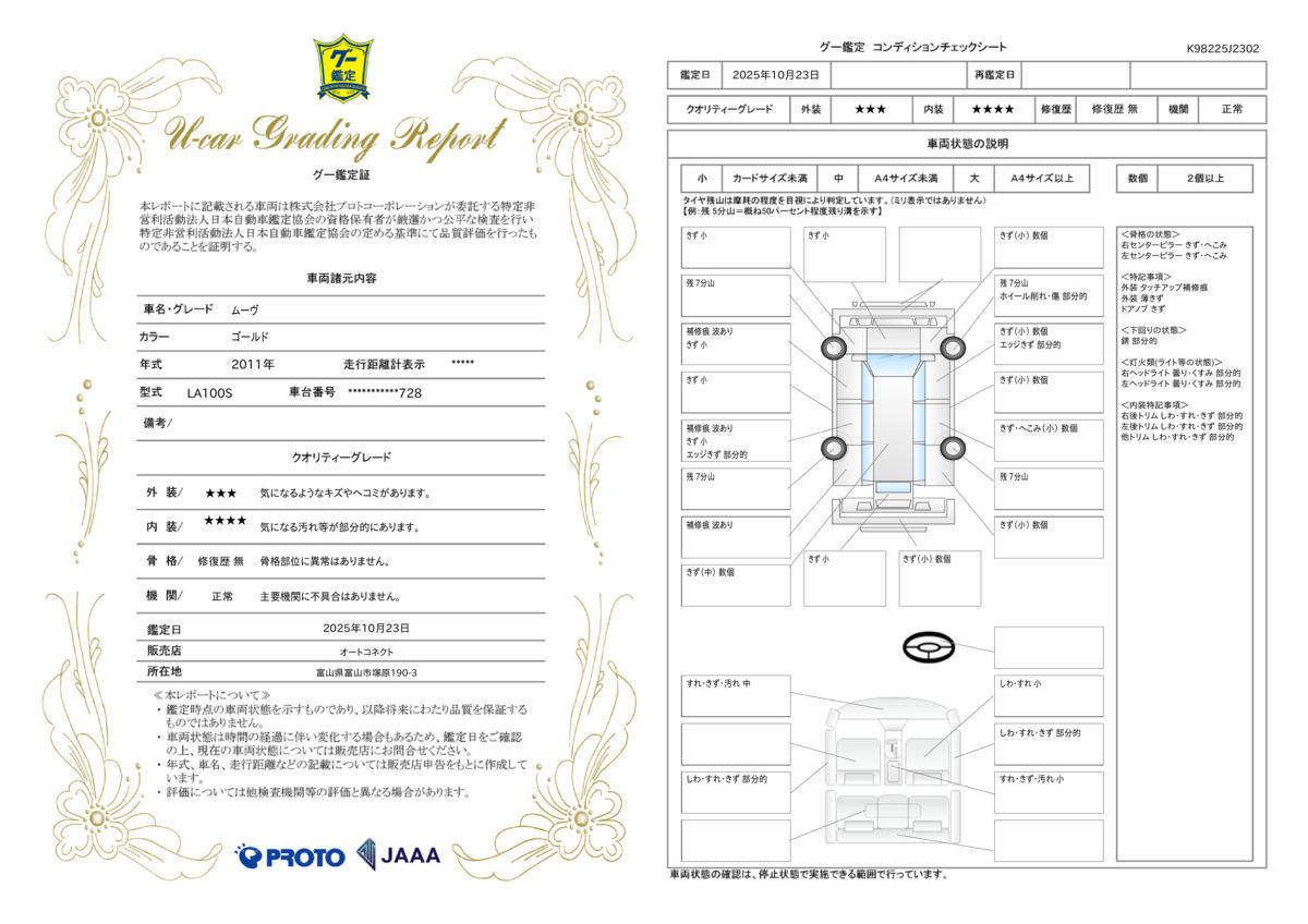 自社保証は3ヶ月又は3000キロ、保証箇所はエンジン、ミッションのみとなります。県外登録の場合は自社保証がお付けできません。加入条件不可のためグー保証もお付けできません。