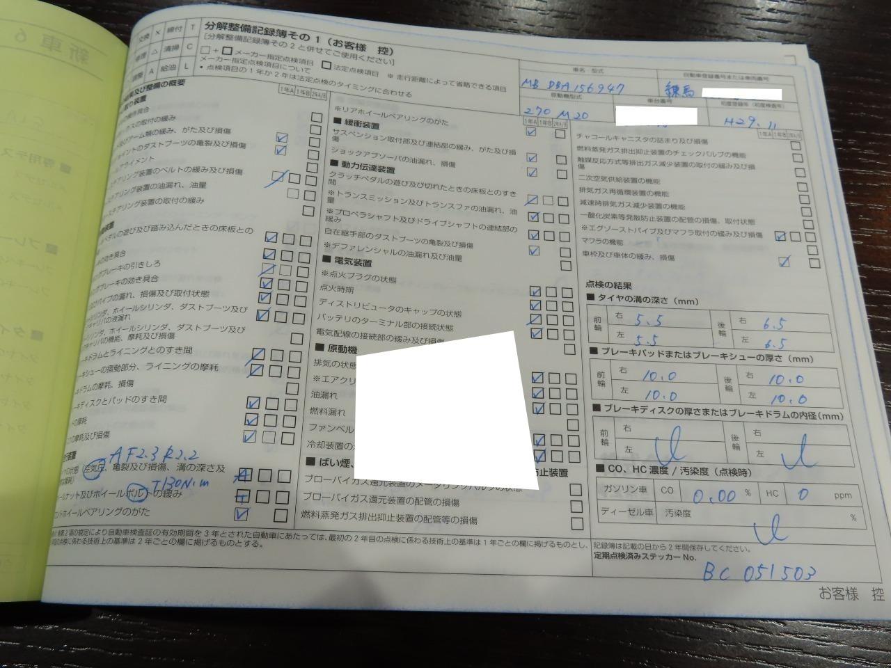 入庫時に約50km近い走行テストや各スイッチ類の動作確認、専用コンピュータによる診断、リフトアップして下回りの損傷や腐食、オイル漏れなど、一通りの点検を終え、異常が無い事を確認し展示しております。 10