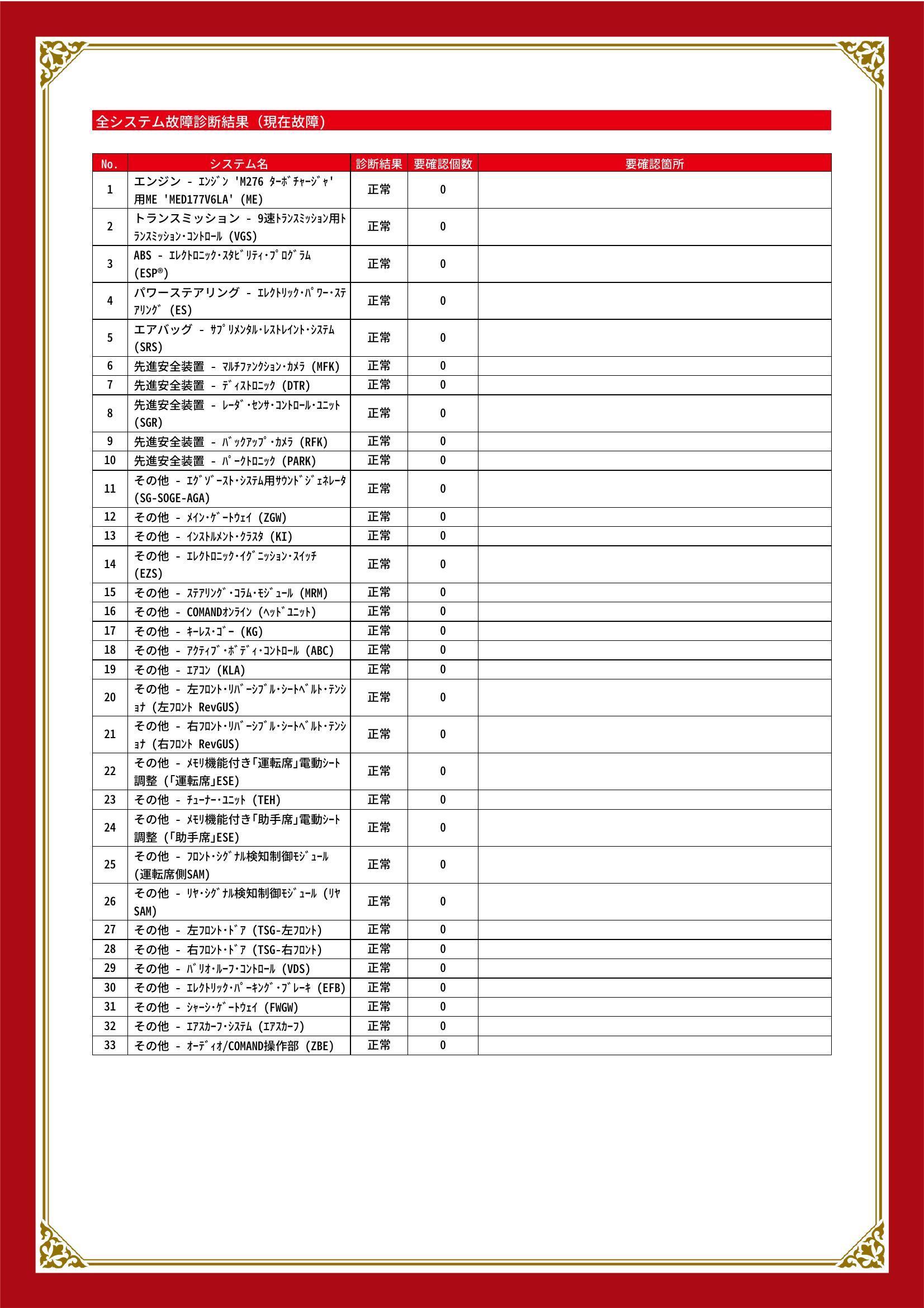 [保証付]:24ヶ月・走行無制限 ●2年保証(走行距離無制限):純正部品の材料または製造上の不具合が発生した場合、無償修理を実施(消耗部品や油脂類、内外装は除く)。全国のメルセデス・ベンツ正規サービスネットワークでご利用いただけます |