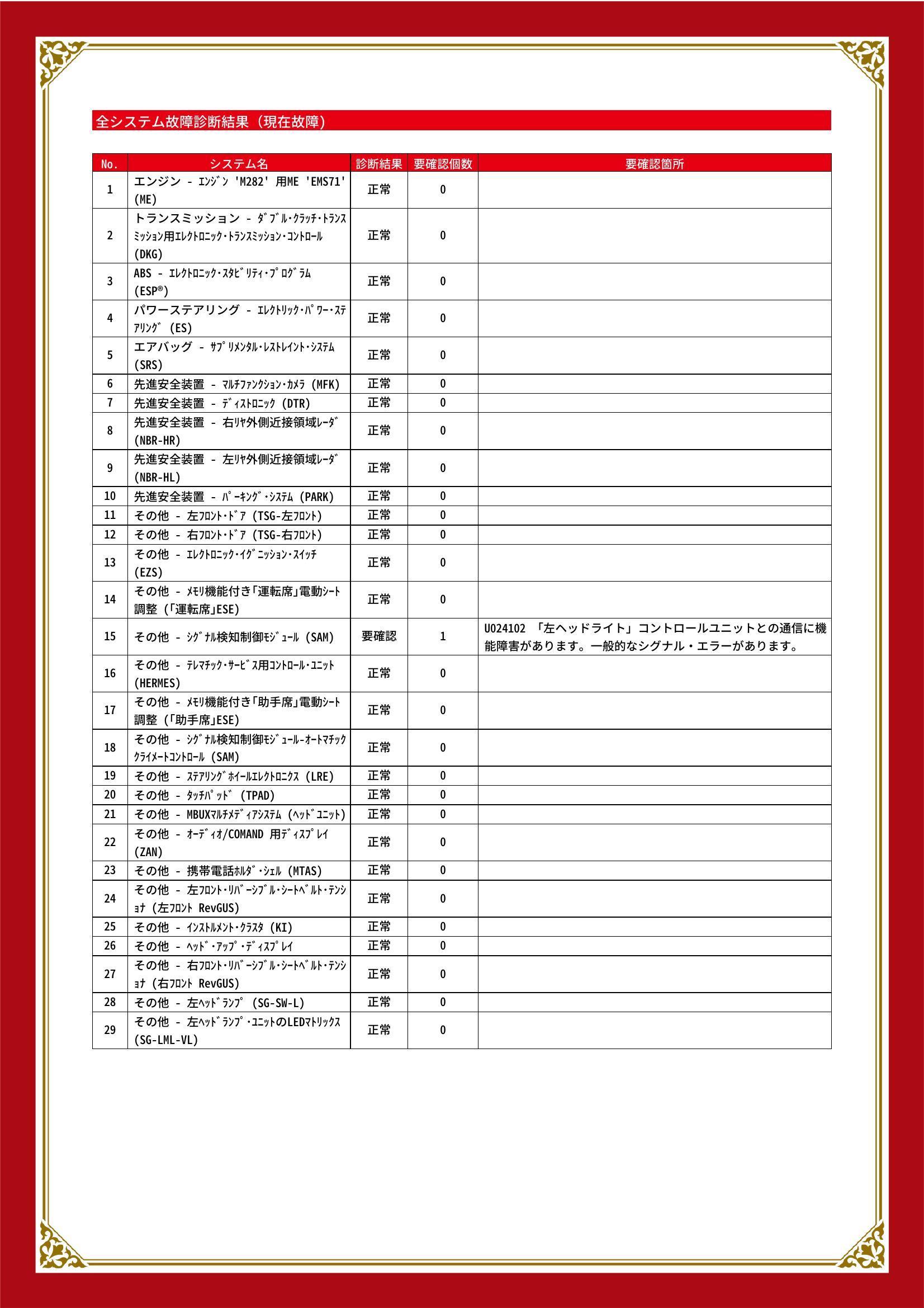 [保証付]:24ヶ月・走行無制限 ●2年保証(走行距離無制限):純正部品の材料または製造上の不具合が発生した場合、無償修理を実施(消耗部品や油脂類、内外装は除く)。全国のメルセデス・ベンツ正規サービスネットワークでご利用いただけます |