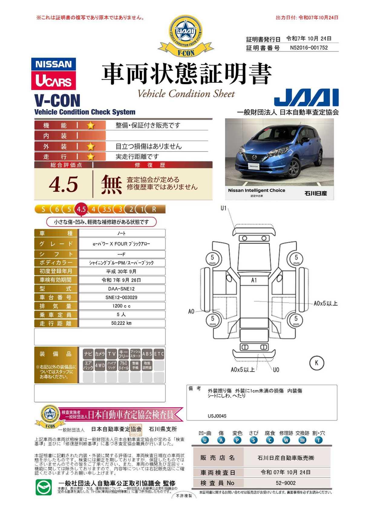 安心の1:走行距離無制限!大切な愛車のパーツを1年間無料保証します。 安心の2:うれしい無料点検付だからご購入後も安心&快適ドライブです。 安心の3:信頼の日産サービス工場でどこでも点検&修理いたします。