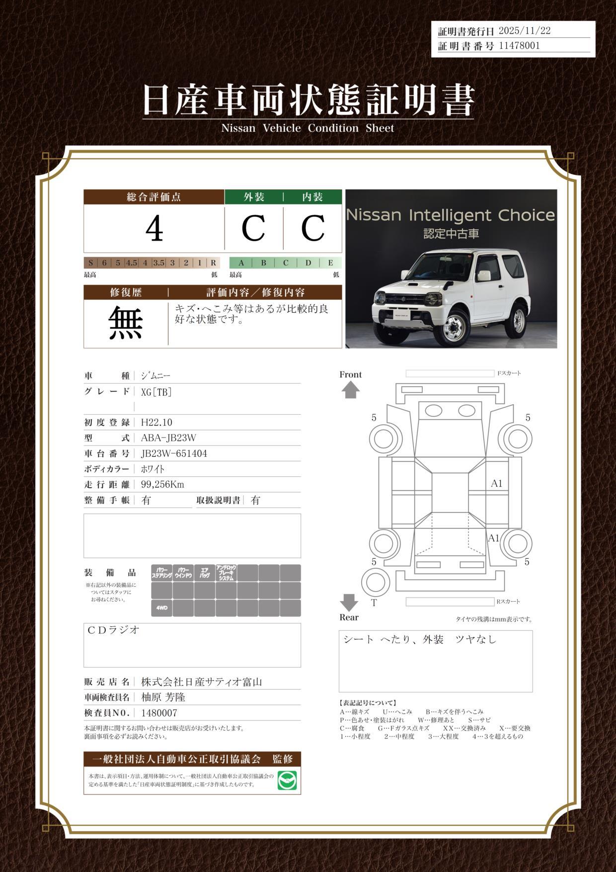 • また、修復歴・法定整備・保証の有無ならびに詳細内容につきましても、必ず各販売店にご確認いただきますようお願いいたします。