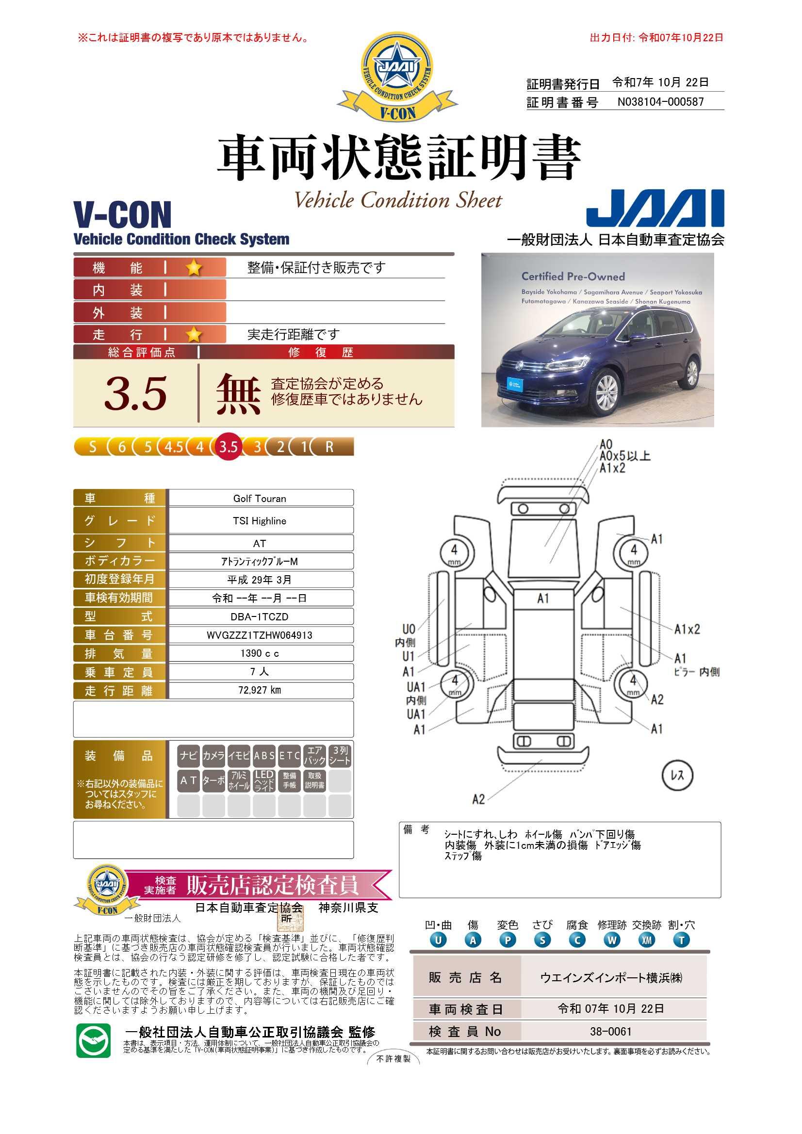 [保証付]:12ヶ月・走行無制限 距離無制限の保証とロードアシスタンスサービスが全車に付帯されています。また延長保証(有償)もご利用頂けます。全国のフォルクスワーゲンディーラーでサービスの受付が可能ですので遠方のお客様もご安心下さい。 |