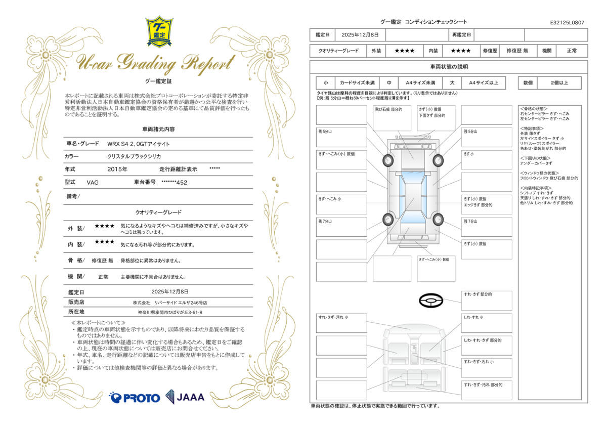 | 保証項目 | 保証項目はスタッフまでお気軽にお問い合わせください。 |