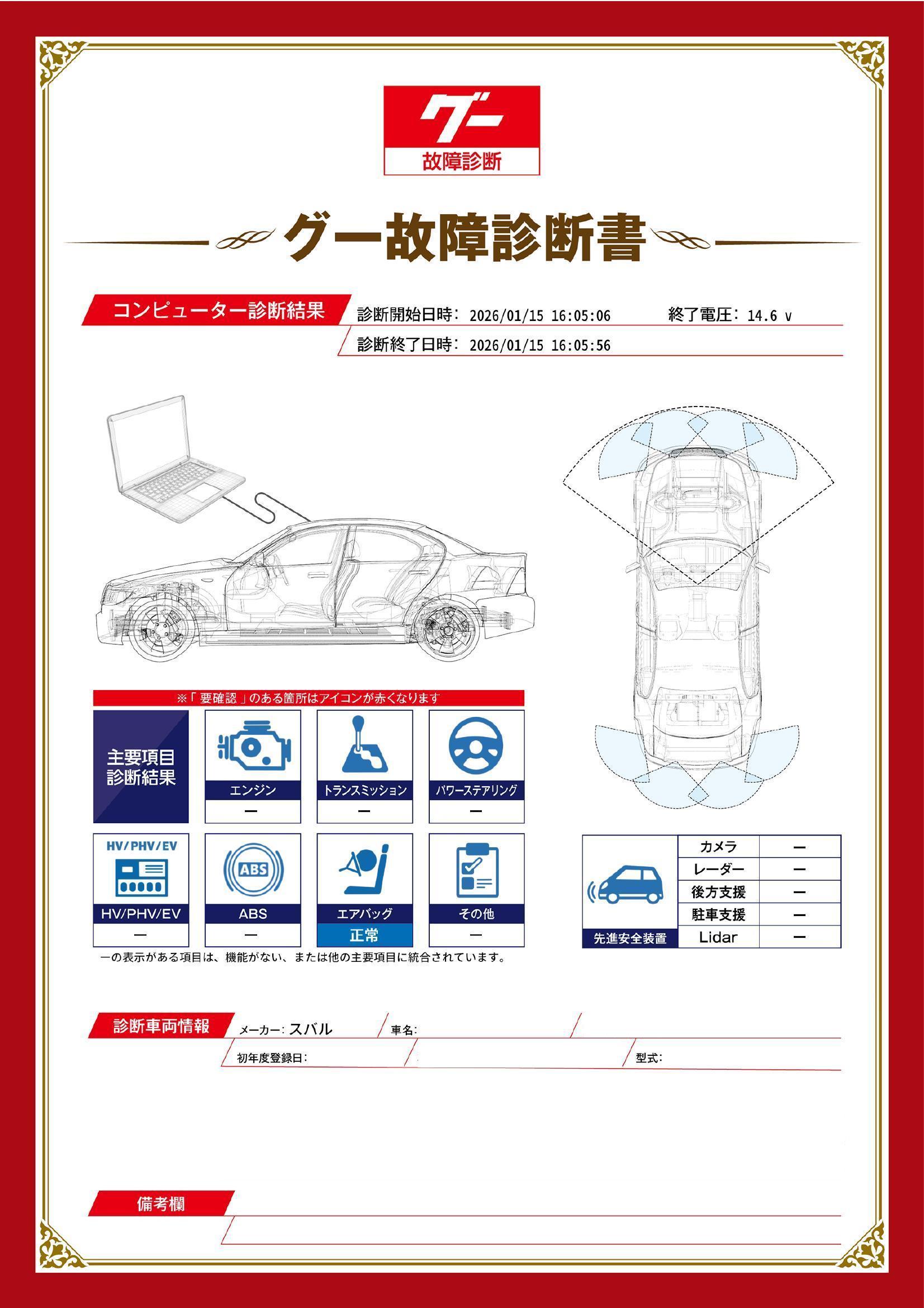 | 保証項目 | 3ヶ月・3000km以内ならエンジン、トランスミッション、ハイブリッド、ステアリング、ブレーキの各機構における主要項目を無償修理(または交換)いたします。 |