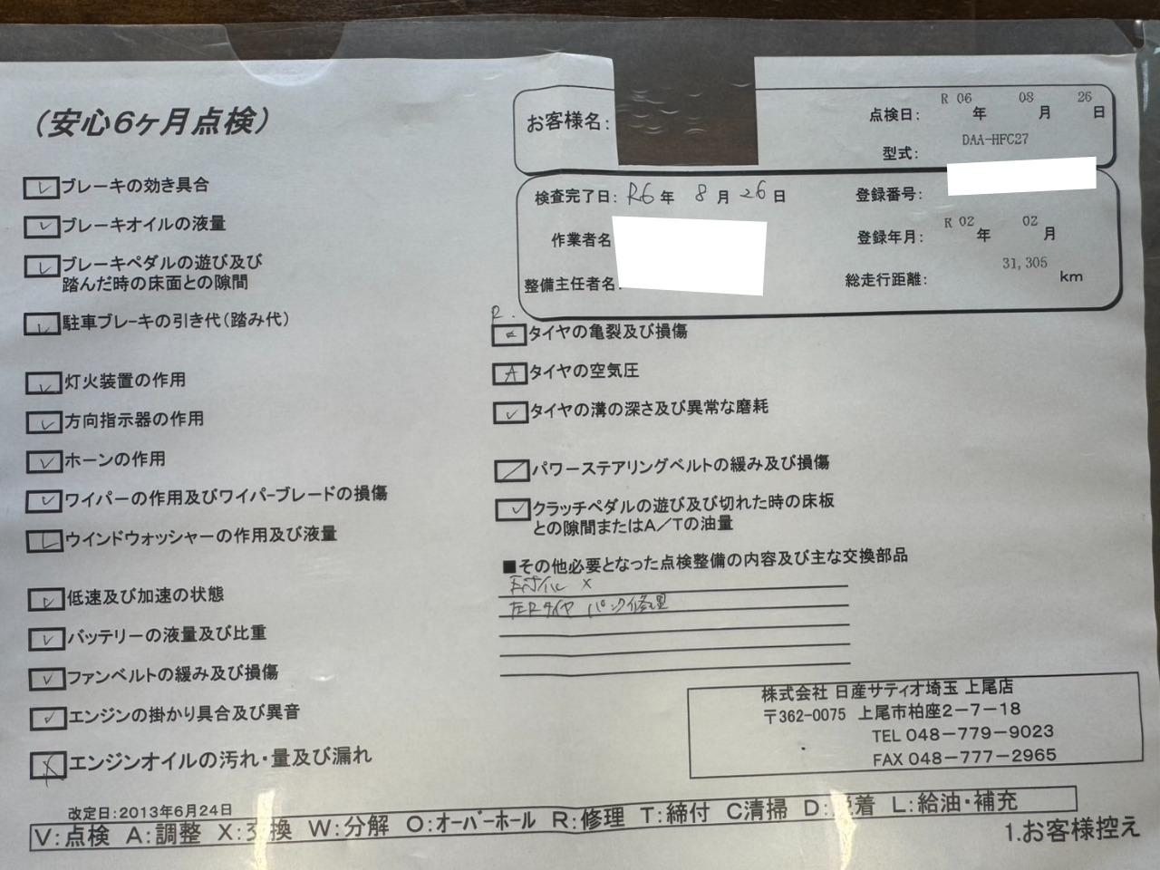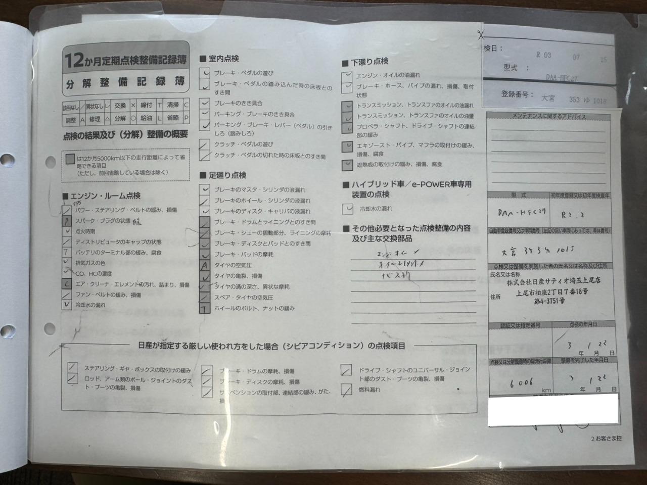 中部運輸局認証工場 岐第6222号。納車前整備・車検・法定定期点検・一般整備も当店にお任せください!