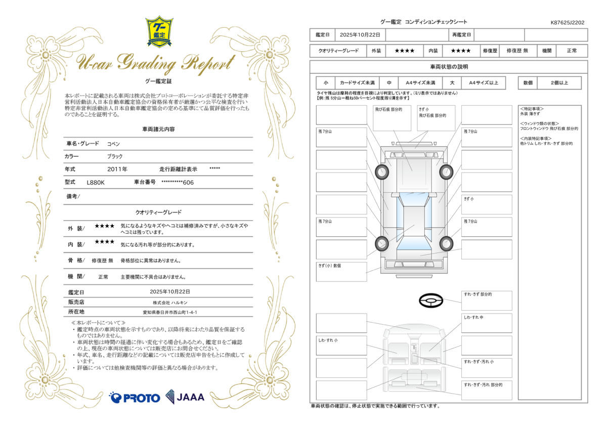 [保証付]:6ヶ月・6000km ※いずれか早い時期が保証適用の条件となります。 当社の車には全車6ヶ月6000キロの無料保証を付帯しております。保証範囲は車の基本性能の【走る】 【曲がる】 【止まる】に関する部分のエンジン・ミッションなどです。エアコンも保証いたします。 |