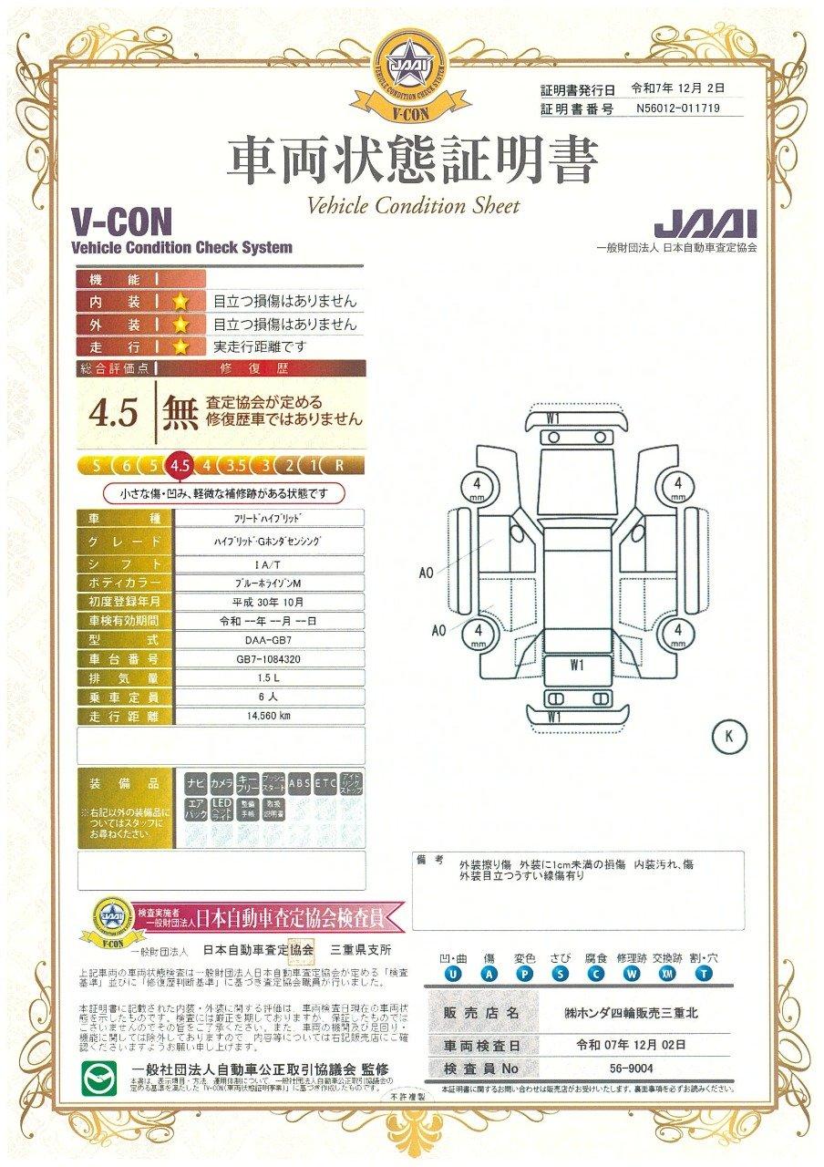 [保証付]:12ヶ月・走行無制限 1年間走行距離無制限のU−Selectホッと保証付き。全国のHondaディーラーにて保証整備を受けることができます。 |