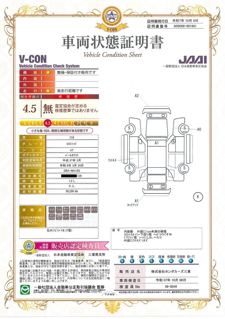 保証について | [保証付]:3ヶ月・3000km ※いずれか早い時期が保証適用の条件となります。 |