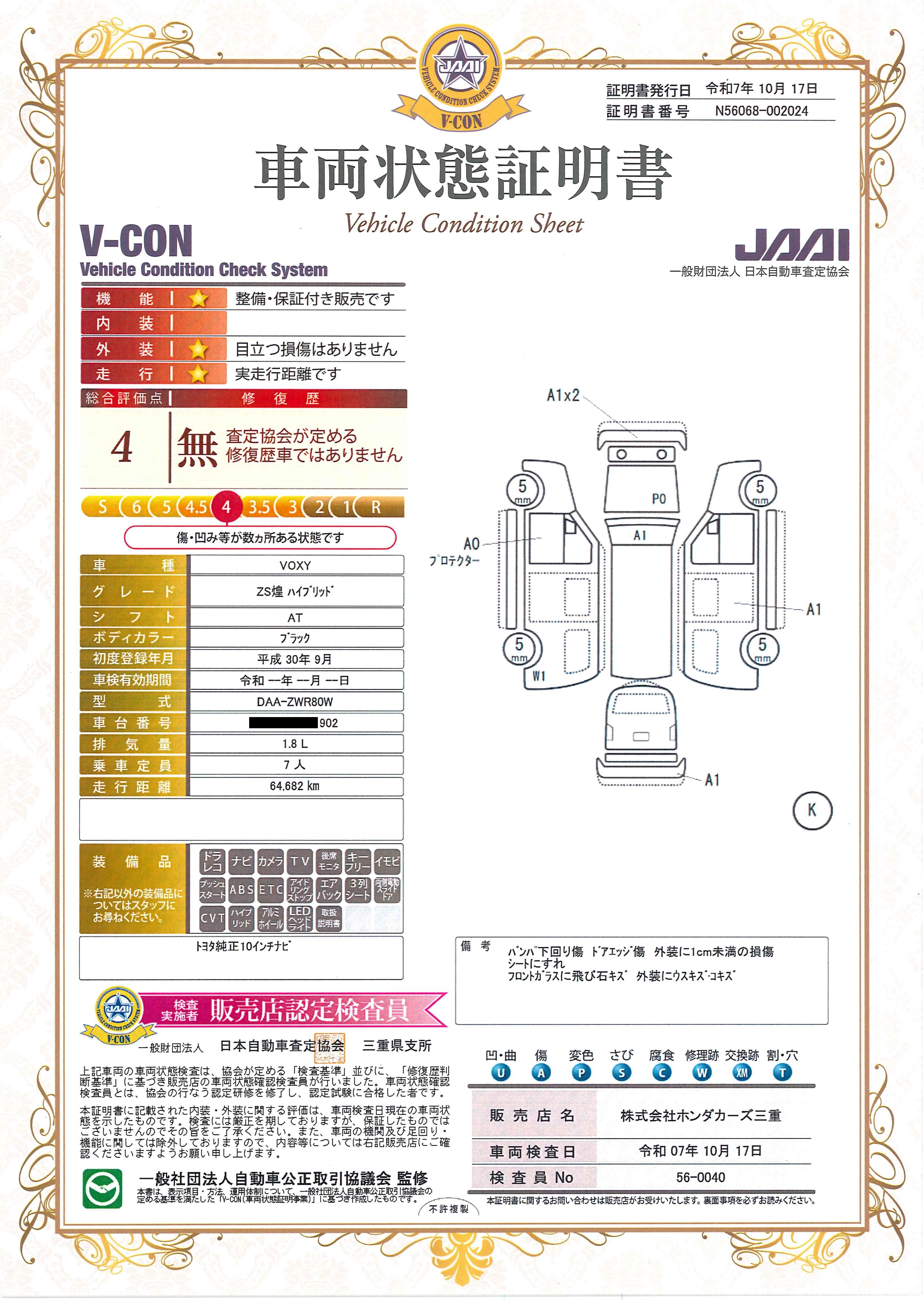 | 保証について | [保証付]:3ヶ月・3000km ※いずれか早い時期が保証適用の条件となります。 |