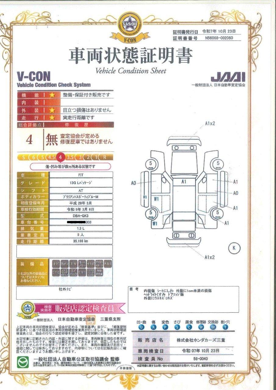 車両状態証明書付!