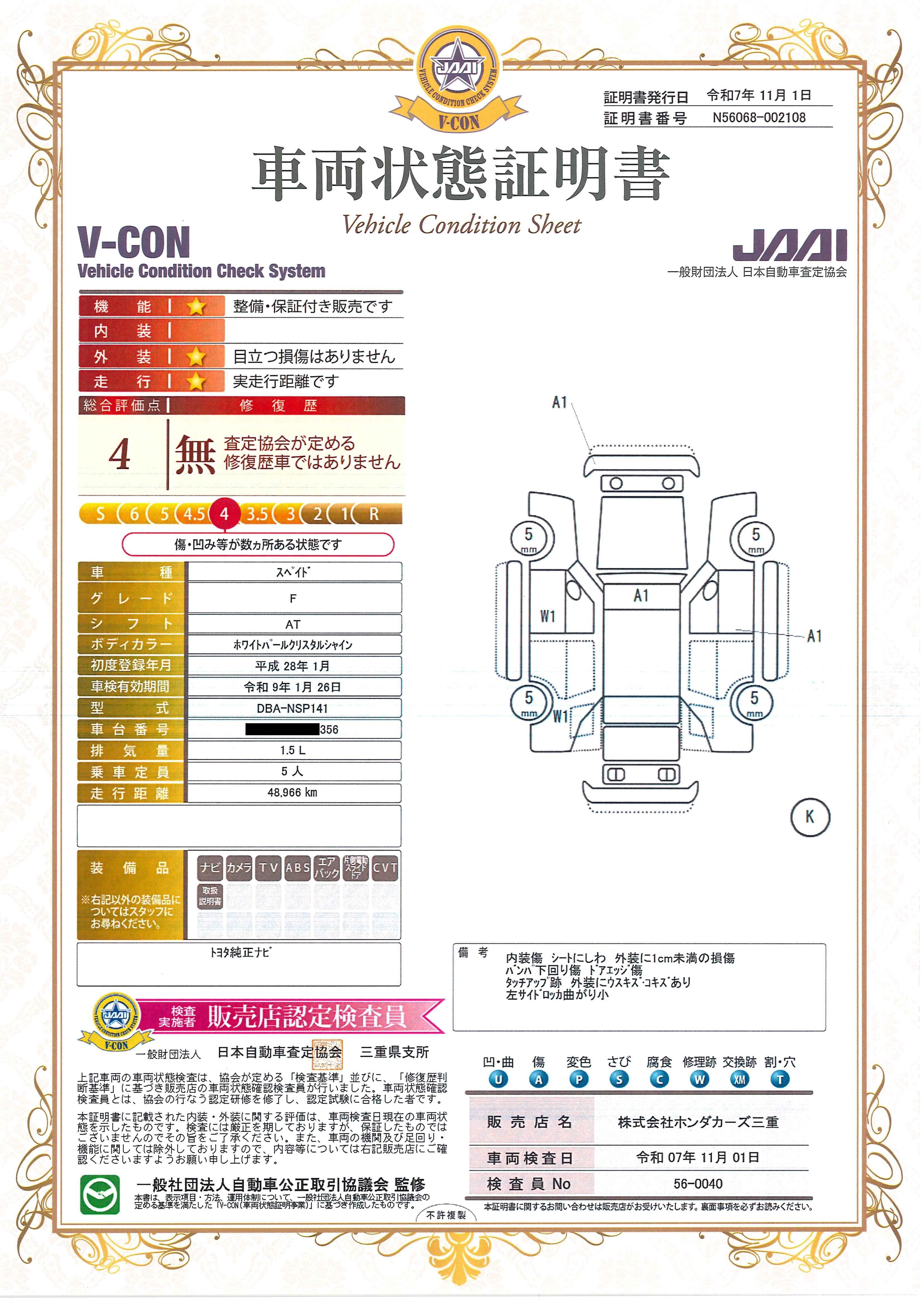 | 保証について | [保証付]:3ヶ月・3000km ※いずれか早い時期が保証適用の条件となります。 |