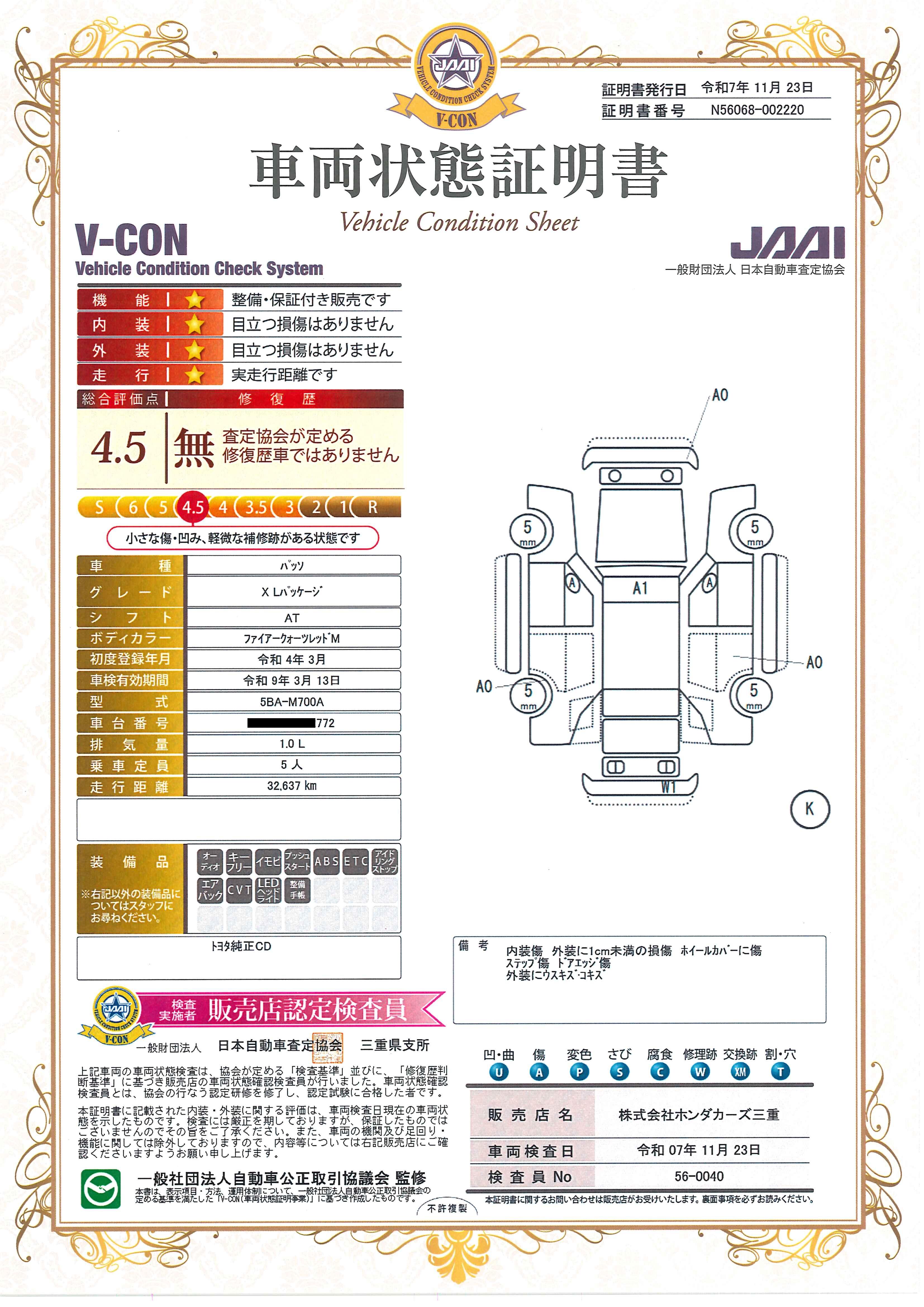 | 保証について | [保証付]:3ヶ月・3000km ※いずれか早い時期が保証適用の条件となります。 |
