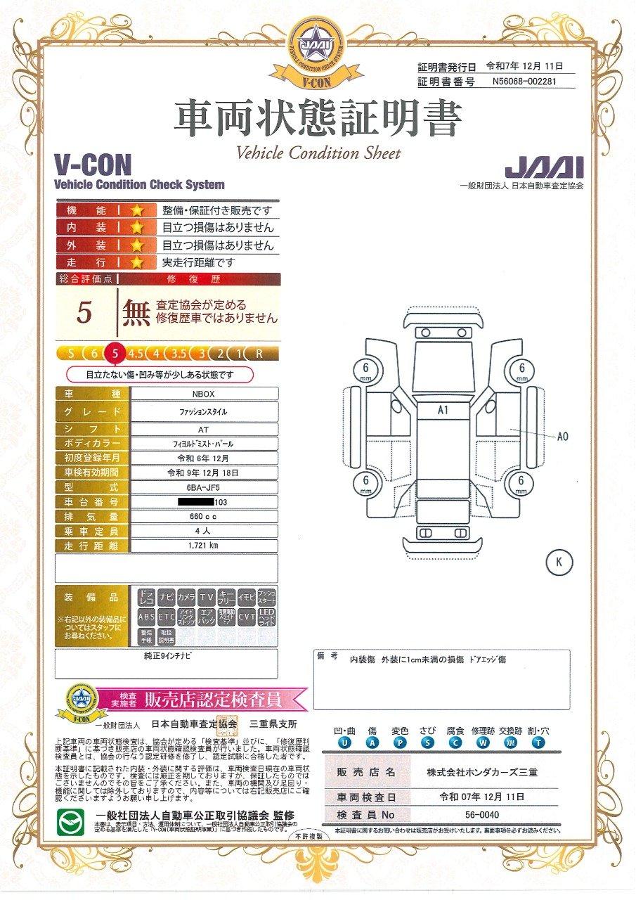 ★車両状態証明書★中古車だと【修復車なのかな?】【傷はどのくらいついているんだろう?】等不安になると思いますが、  な・ん・と!!ホンダカーズ三重の中古車には   車両状態証明書が付いています!! 52