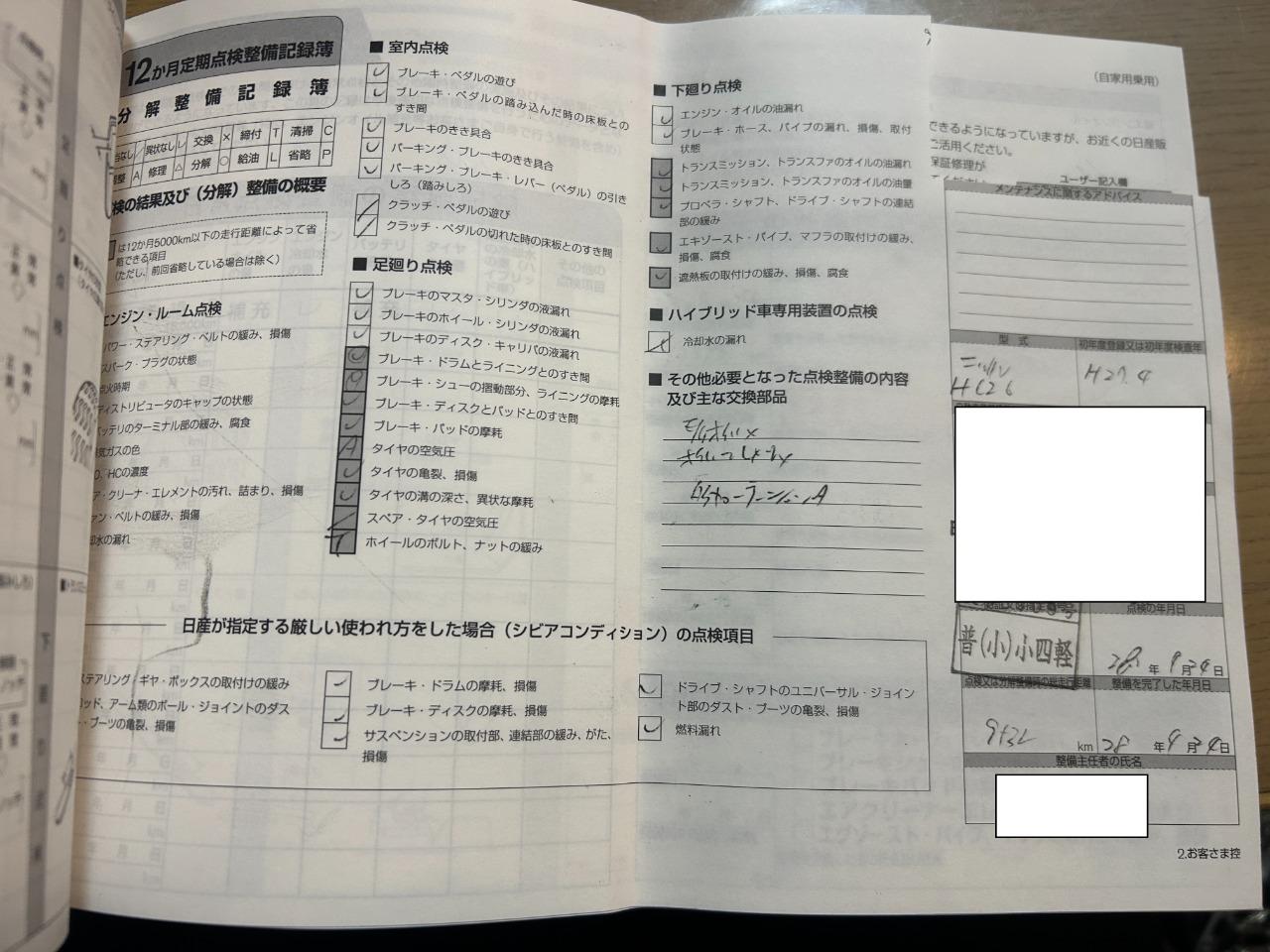 • 点検整備記録簿あり