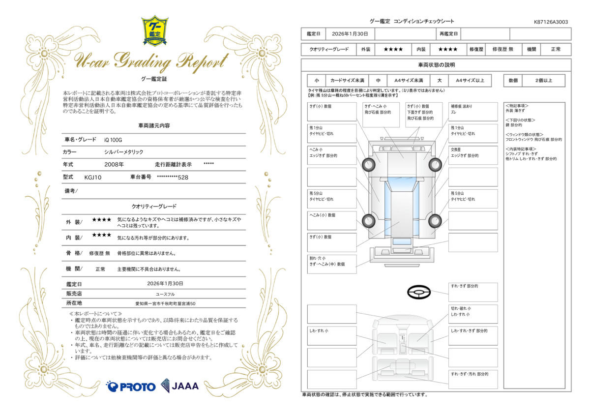 | 保証について | [保証付]:1ヶ月・1000km ※いずれか早い時期が保証適用の条件となります。 |