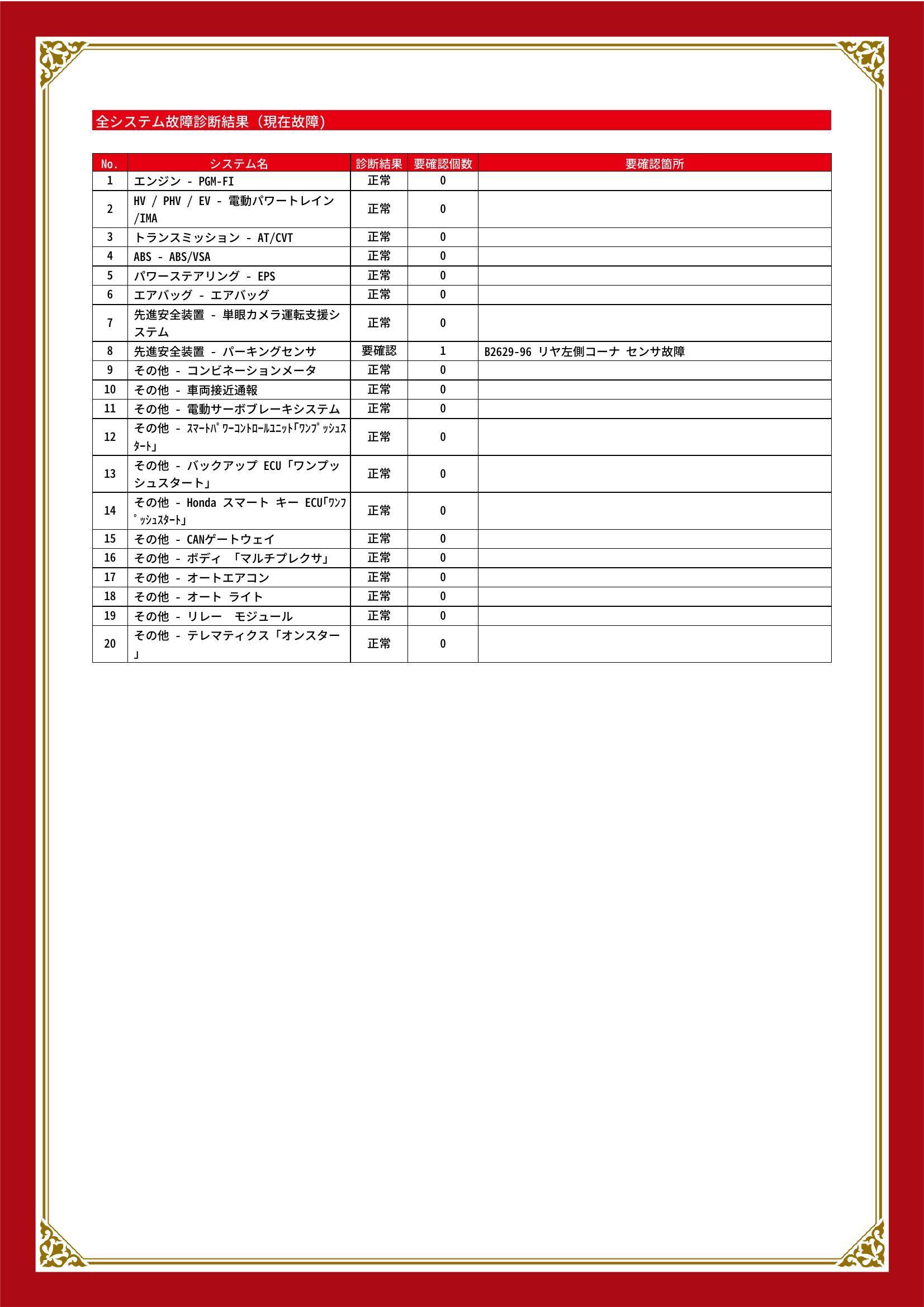 | 保証項目 | |