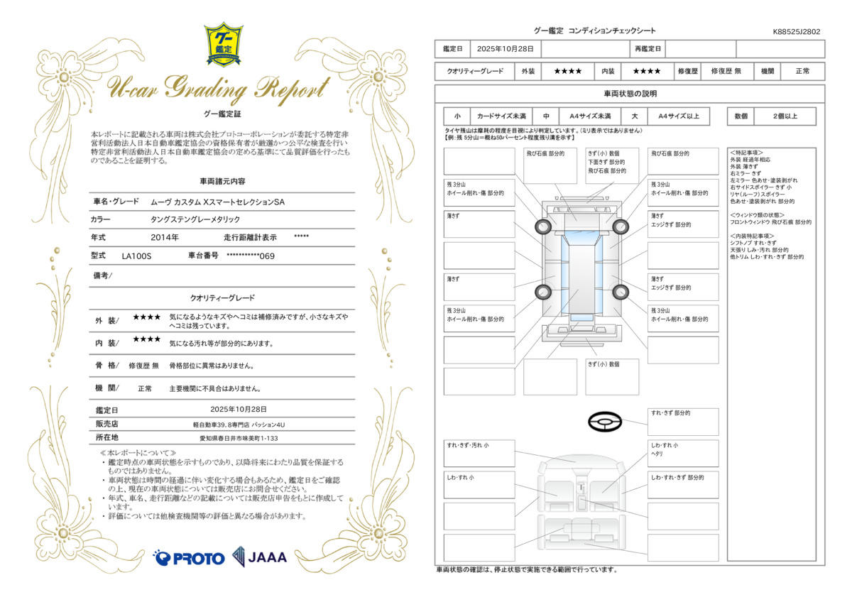 [保証付]:1ヶ月・1000km ※いずれか早い時期が保証適用の条件となります。 パッションは全車ロング保証付き!『売ったら終わり』というクルマ屋さんでは買わないでください。当社は任せて安心の整備工場、鈑金工場を完備している為アフターも安心です! |