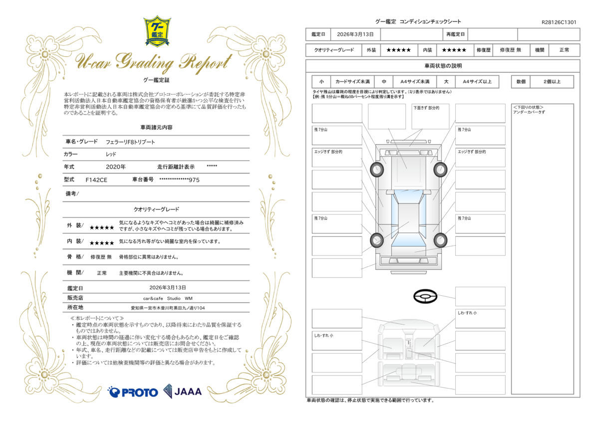 ロッソコルサのオリジナルペイントを保証するラベルが貼られています。 メーカーオプションリストからすると、ロッソコルサDS322になります。 10