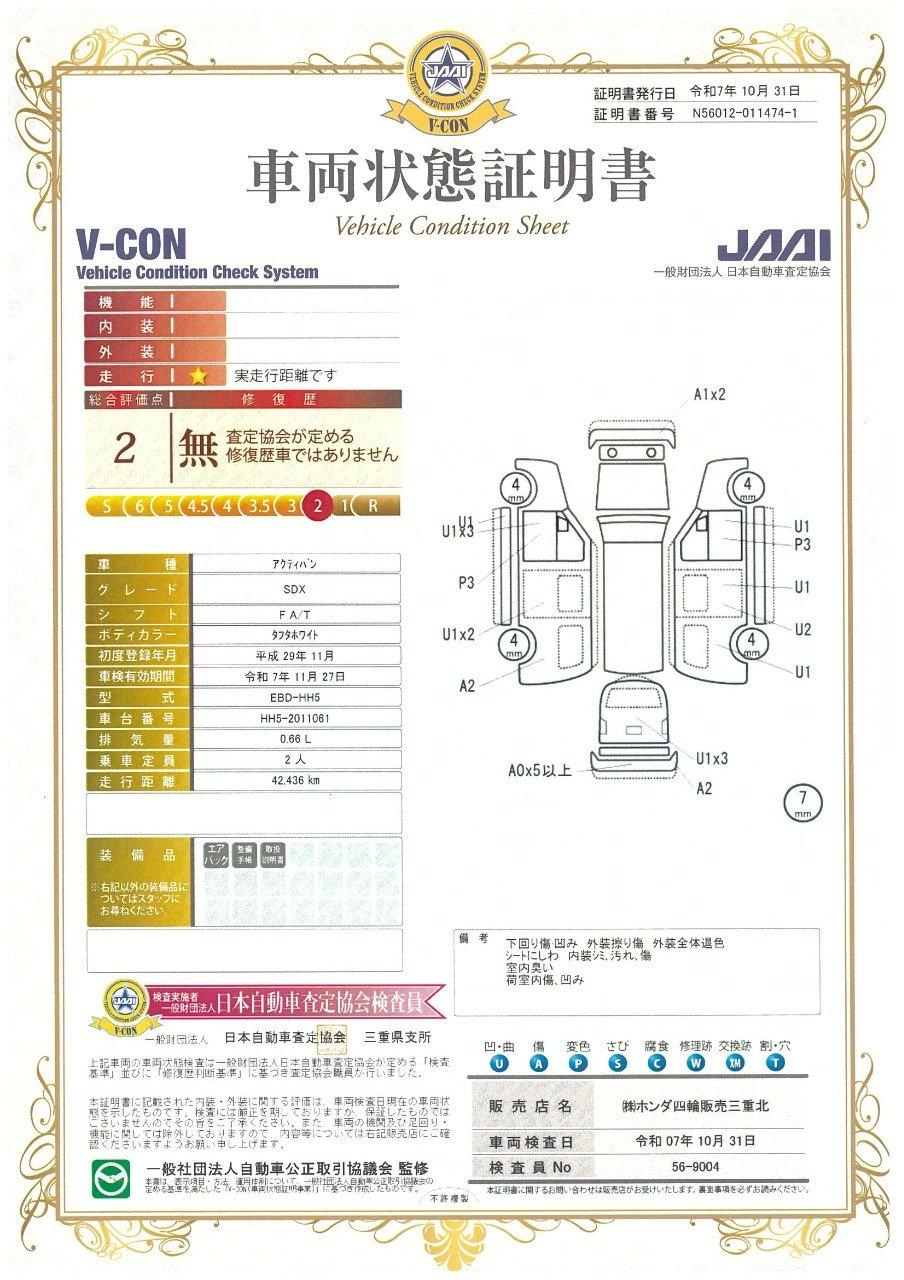 ホンダ アクティバン SDX オートマチック車 純正ラジオ キーレスエントリー エアコン パワステ スペアキー 禁煙車