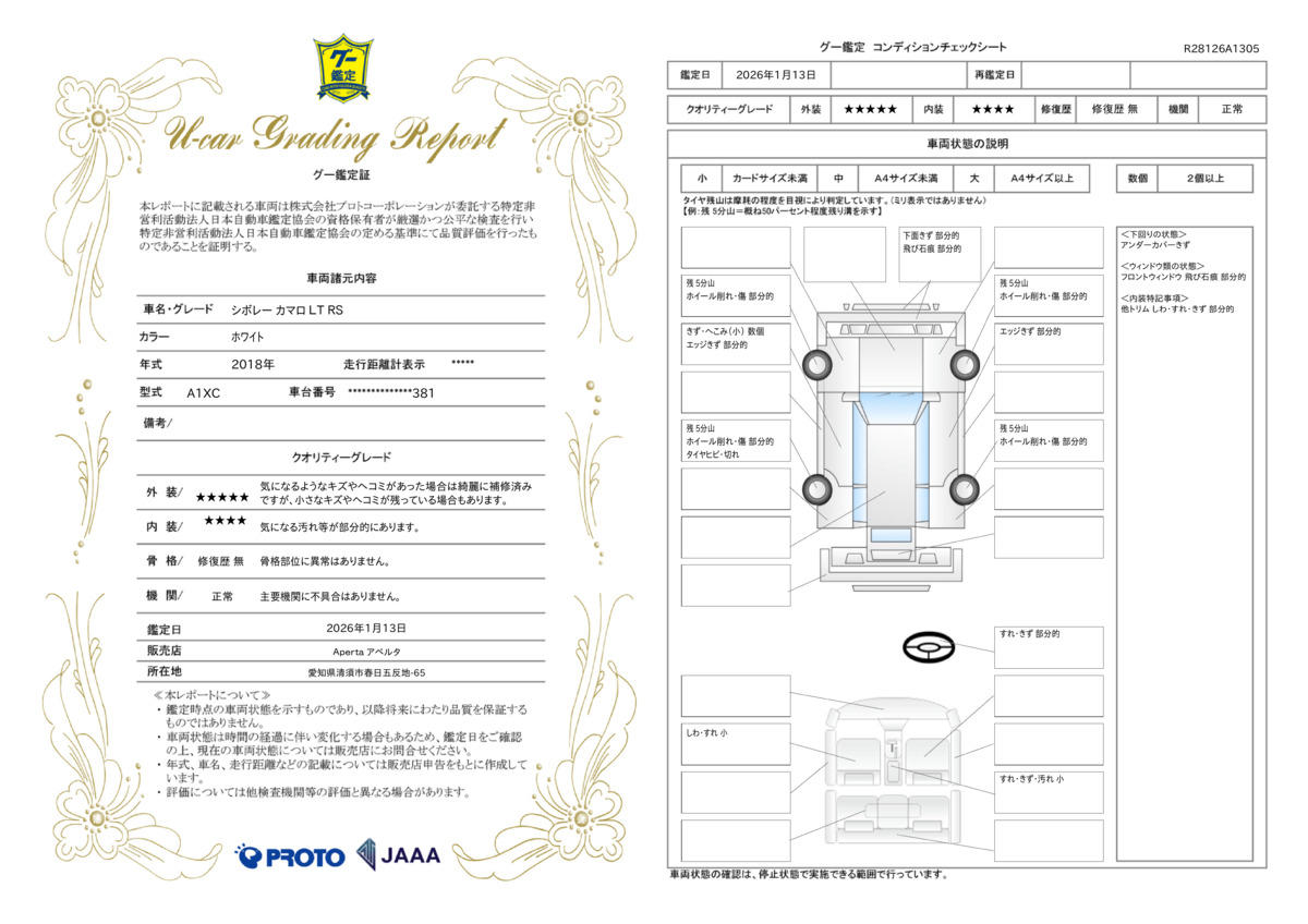 | 保証項目 | エンジン・吸排気システムなど重要部品を保証。業界最多381部位、業界最長3年の保証も選べる充実の保証をご用意!正規輸入車ディーラー運営の双日グループが実現するスーパーカーも対象の特別な保証。 |