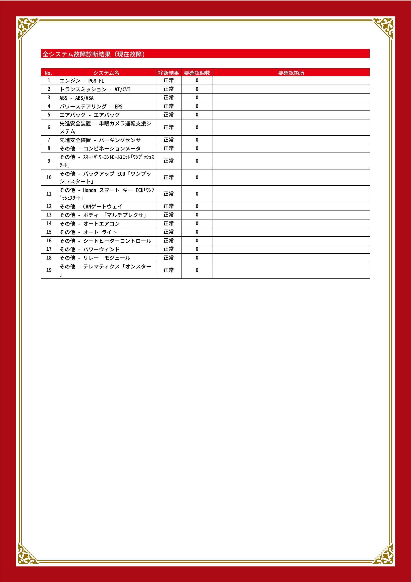 | 保証項目 | − |