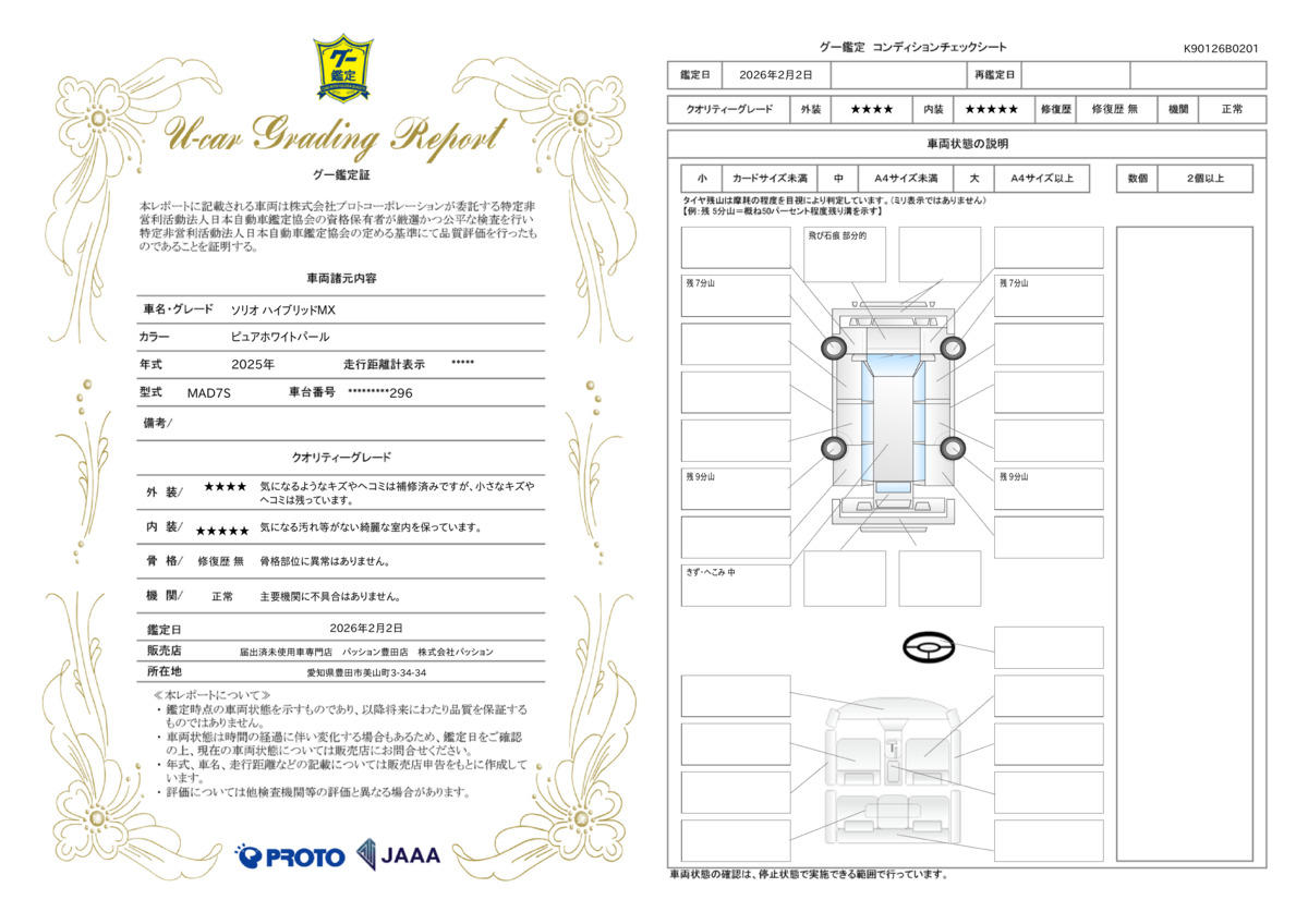 [保証付]:6ヶ月・6000km ※いずれか早い時期が保証適用の条件となります。 保証費用は本体価格に含まれています。詳細については、販売店にご確認ください。別途、業界最長クラスの10年保証でお客様にご安心をご提供。お客様ご自身でおクルマに合わせてお選び頂ける有料保証となります。 |