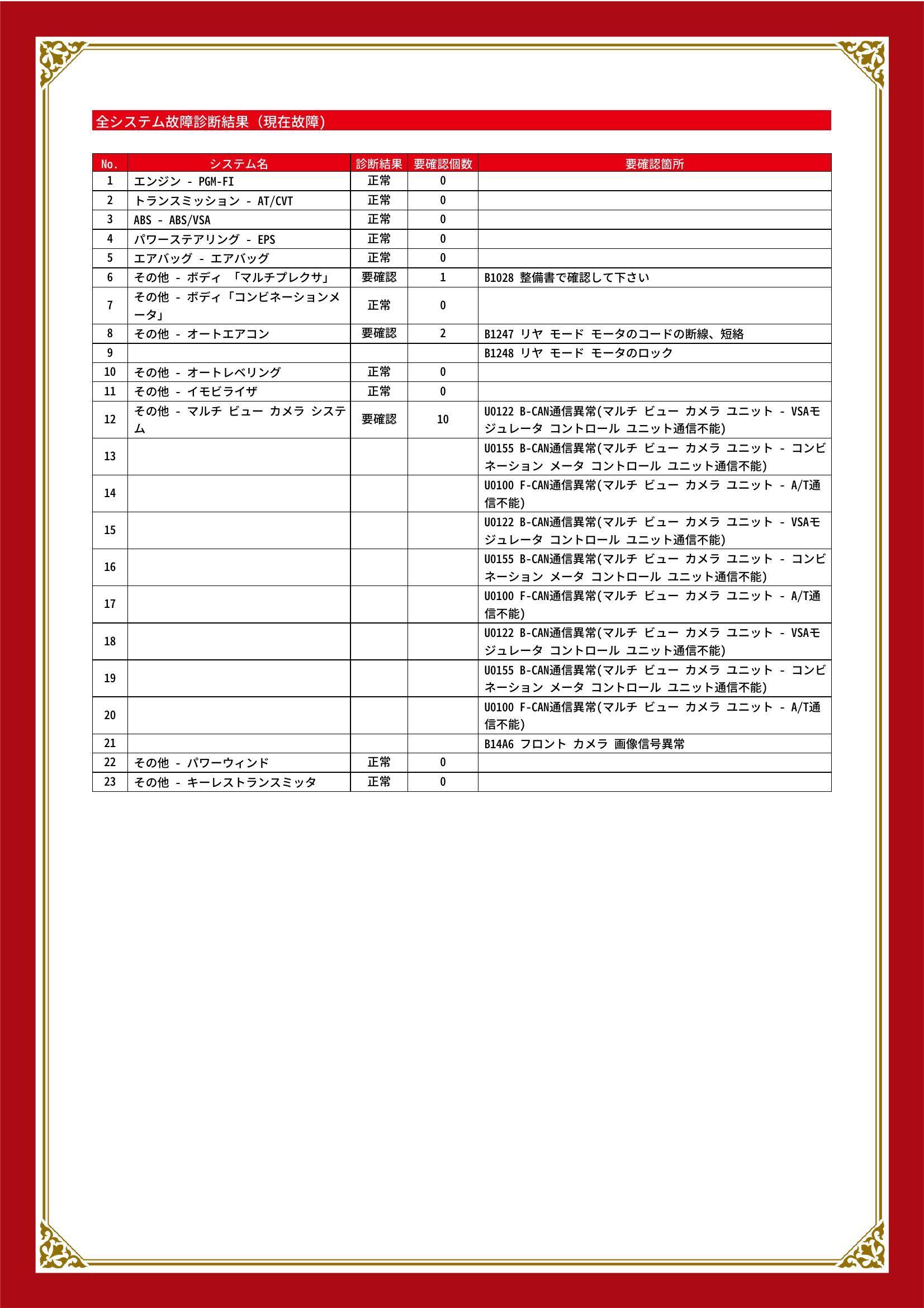 ゼノモーター無料保証について■対象になる項目エンジン主要部分のみ■上限金額上限3万円まで別途380項目プレミア保証のご案内も可能になりますのでスタッフへお問い合わせください。