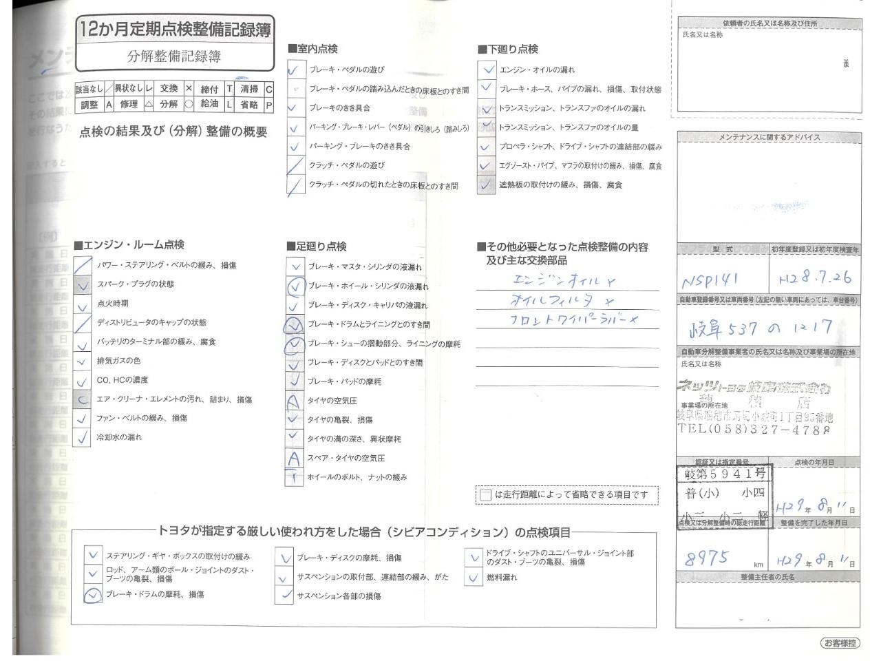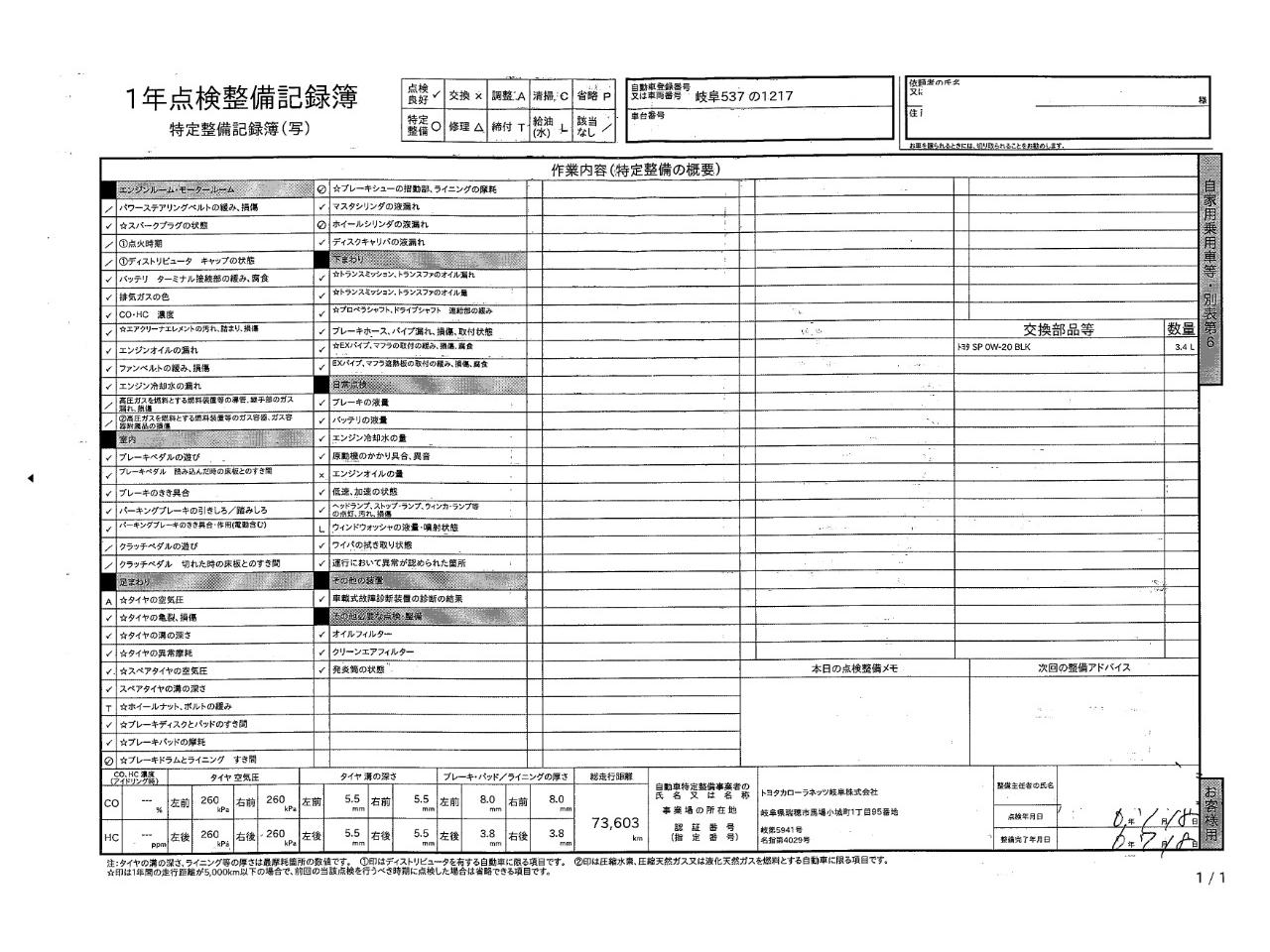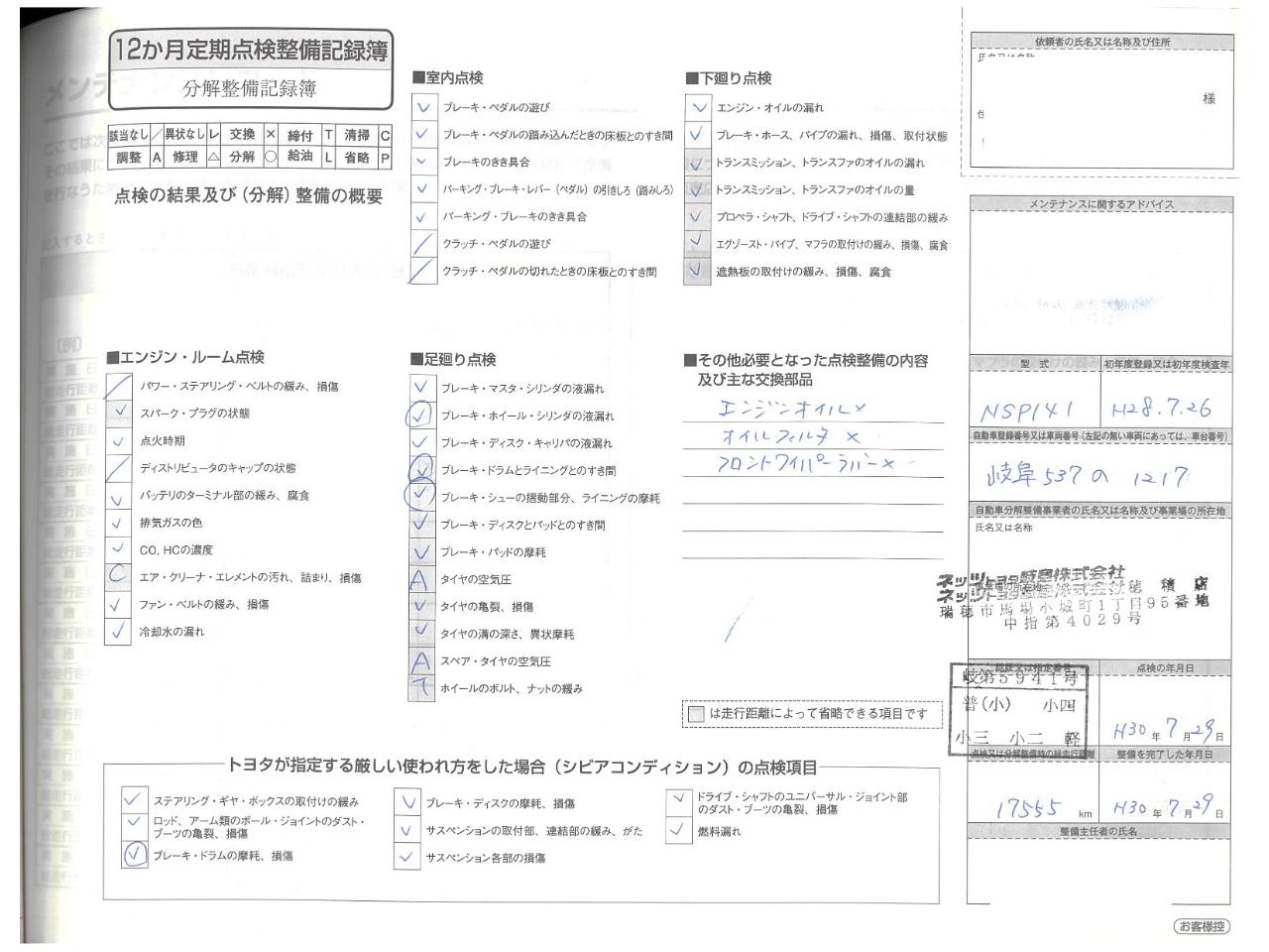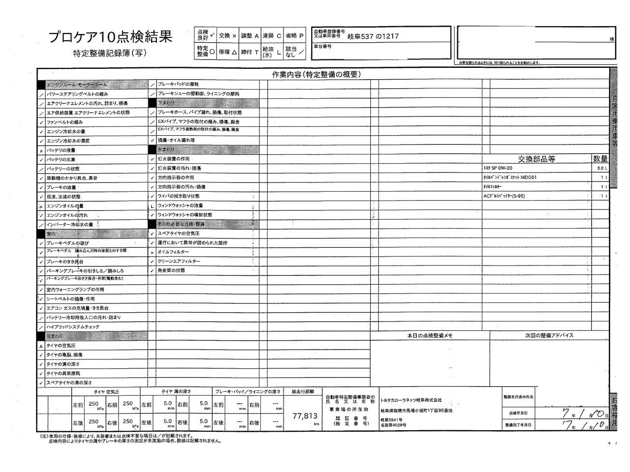 エンジンオイルはもちろんのこと、消耗品等もしっかりチェックし、交換しております。 15